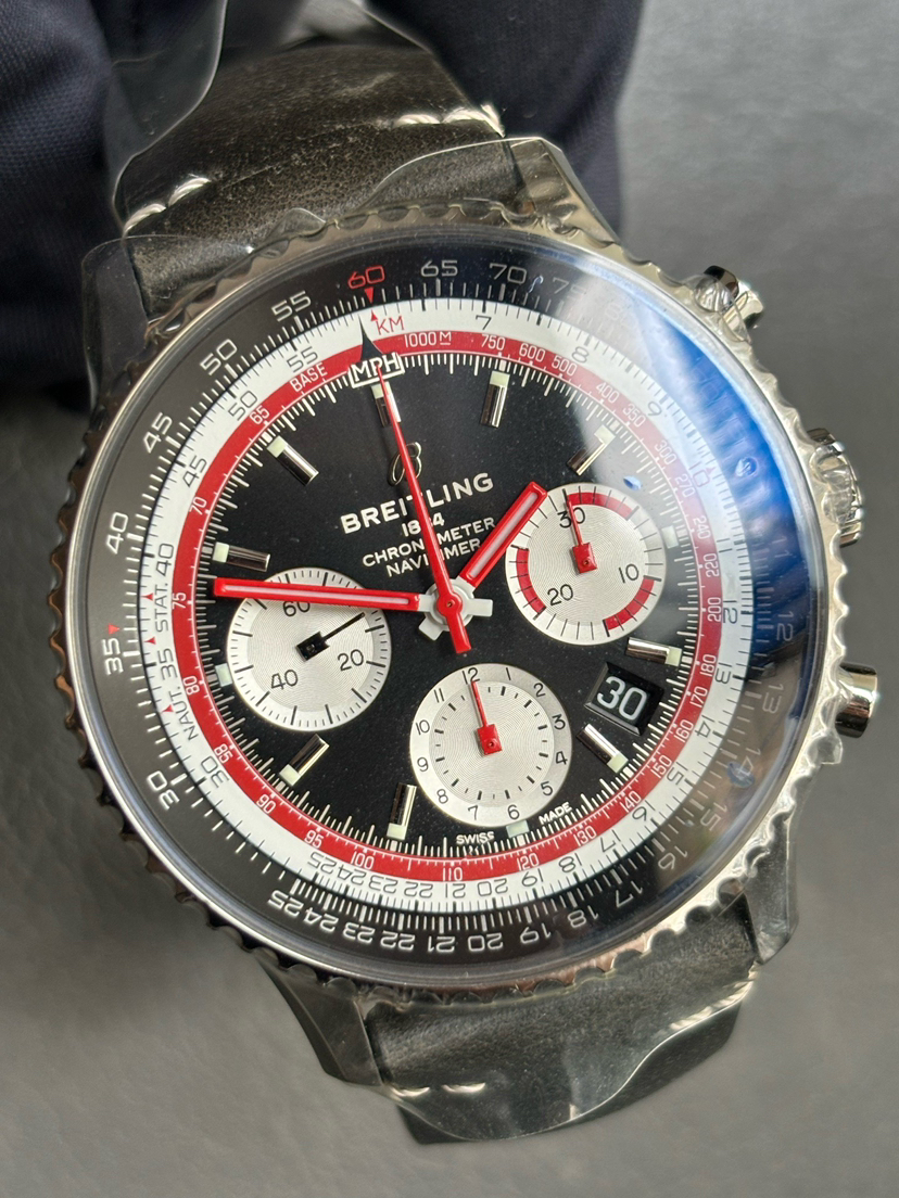 红黑配色极致美丽、前无古人后无来者的设计致敬70年前的传奇表款,独一无二的方形指针,设计感强烈,最经典B01机芯,百年灵爱好者、收藏者期待的佳品