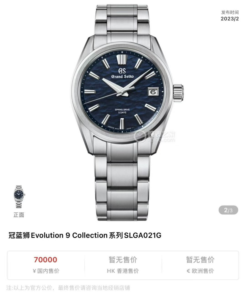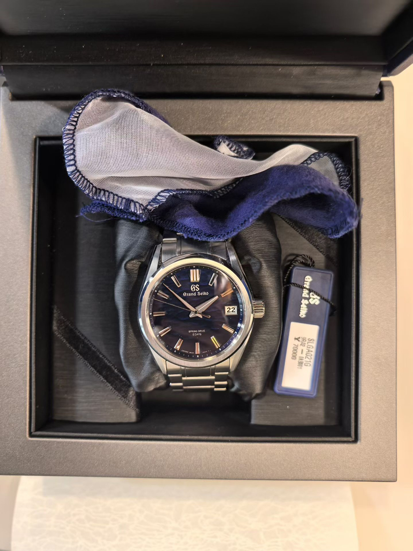 GS冠蓝狮 ,Evolution 9 系列SLGA021G 。Spring Drive 5天动储,40mm表径,11.8mm厚度,一款灵感源自黎明前被微风轻拂的诹访湖的新作。专柜价70000。2025年1月保卡,极品全套,原始极品成色,4.x[勾引][勾引][勾引]