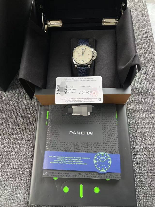 沛纳海/Panerai 庐米诺杜尔 PAM00906 自动机械 AISI 316L精钢(强效抗蚀的钢合金),经抛光处理 表径42毫米 密底设计 专柜价50100 20年全套带延保 ,现货好价。