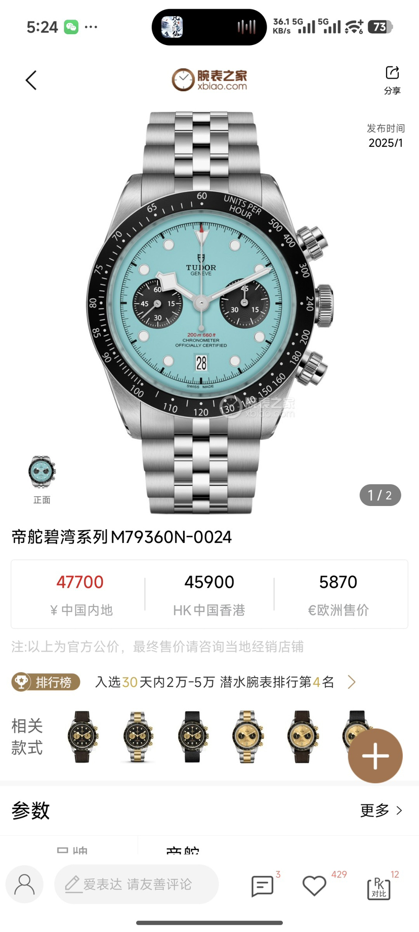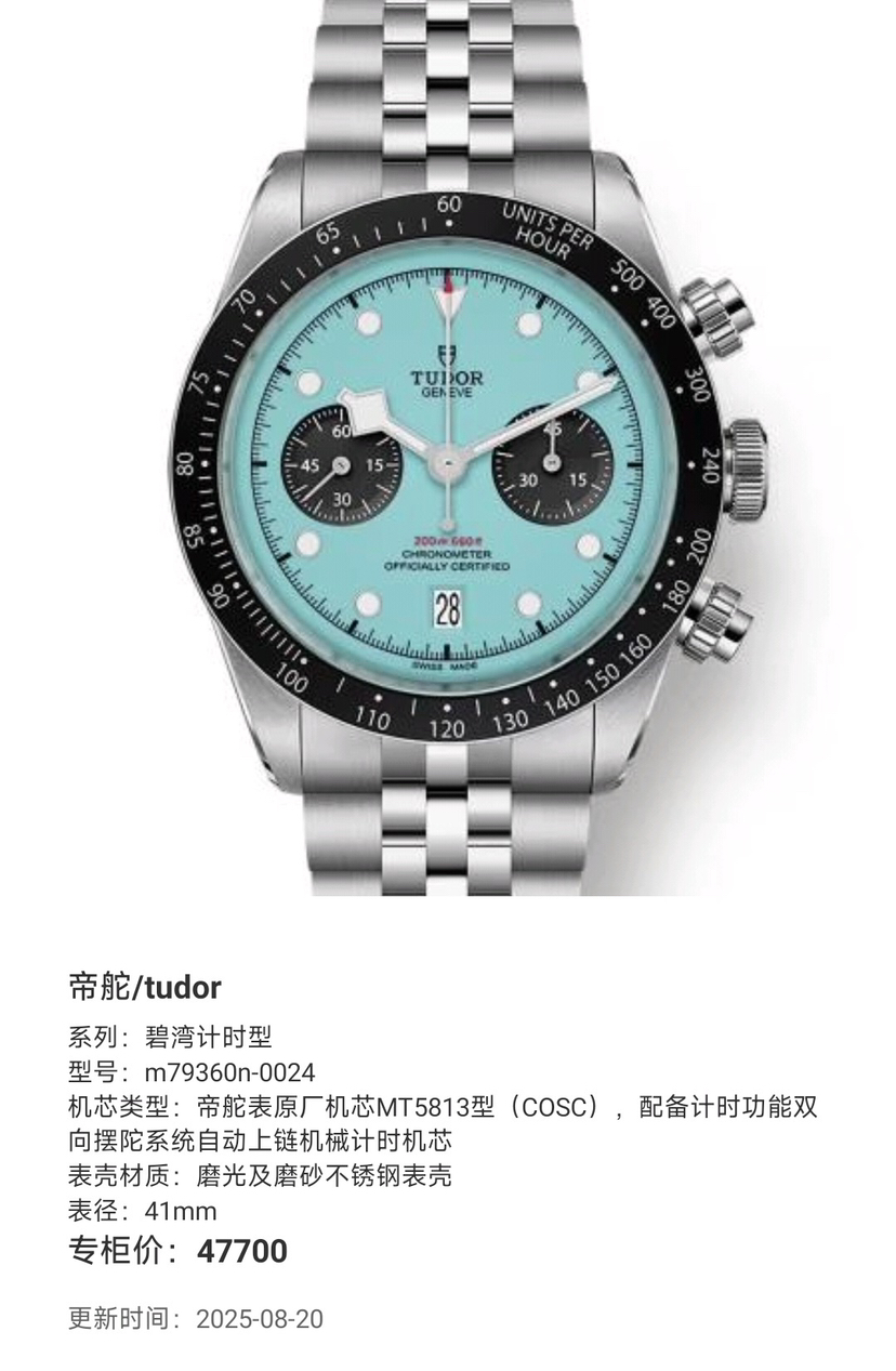 帝舵/tudor 碧湾计时型 m79360n-0024 帝舵表原厂机芯MT5813型(COSC),配备计时功能双向摆陀系统自动上链机械计时机芯 磨光及磨砂不锈钢表壳 41mm 专柜价47700 国行全新未使用25年12月卡,现货好价!