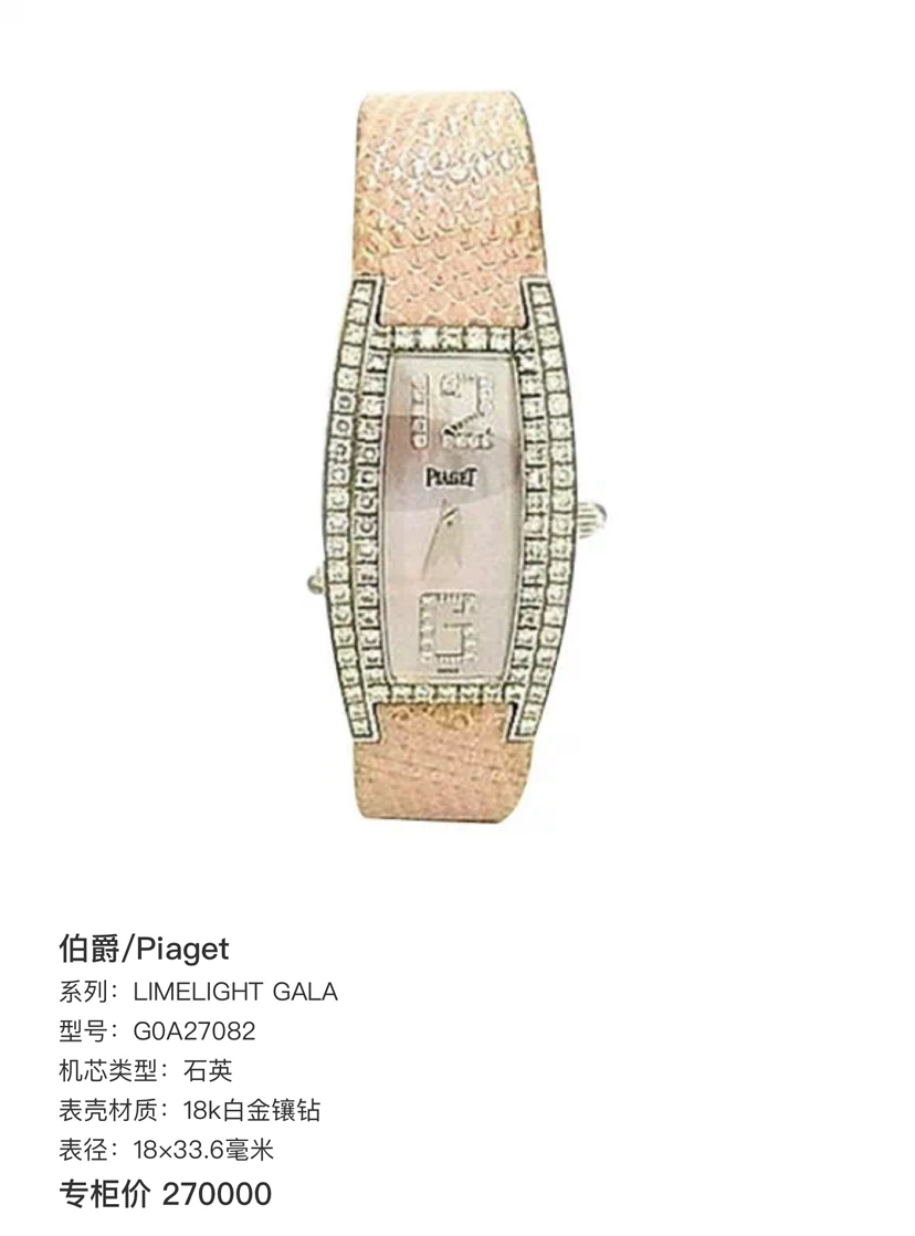 单表伯爵/Piaget G0A27082 石英 18k白金镶钻 18×33.6毫米 专柜价270000