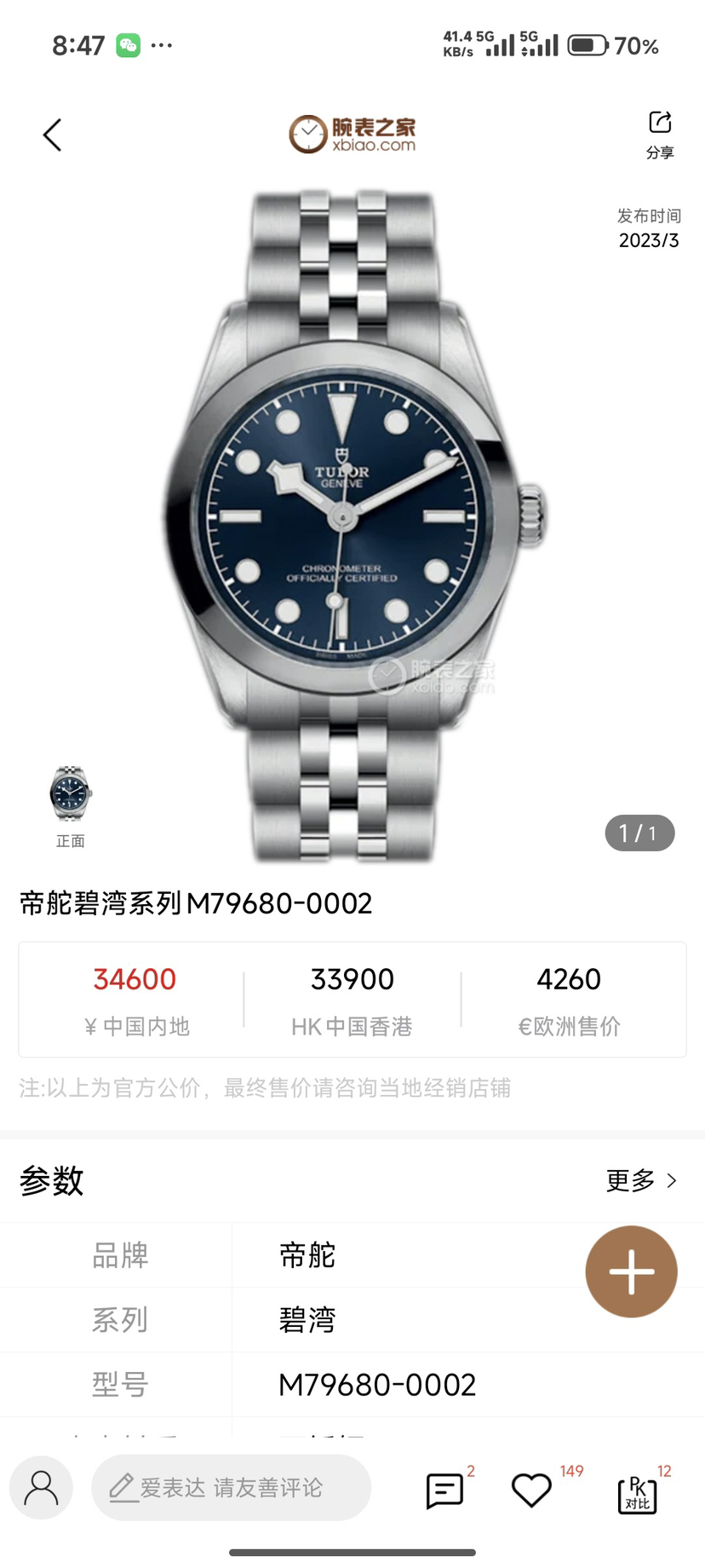 帝舵/Tudor 碧湾型 41 m79680-0002