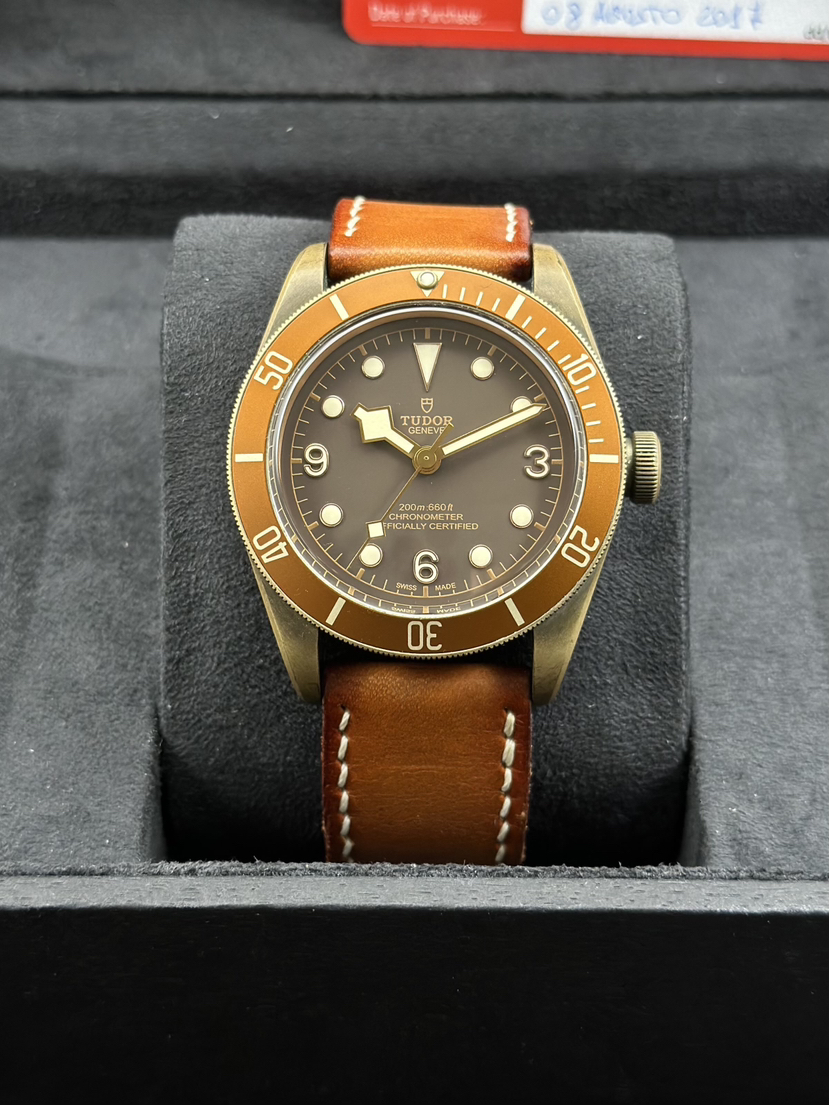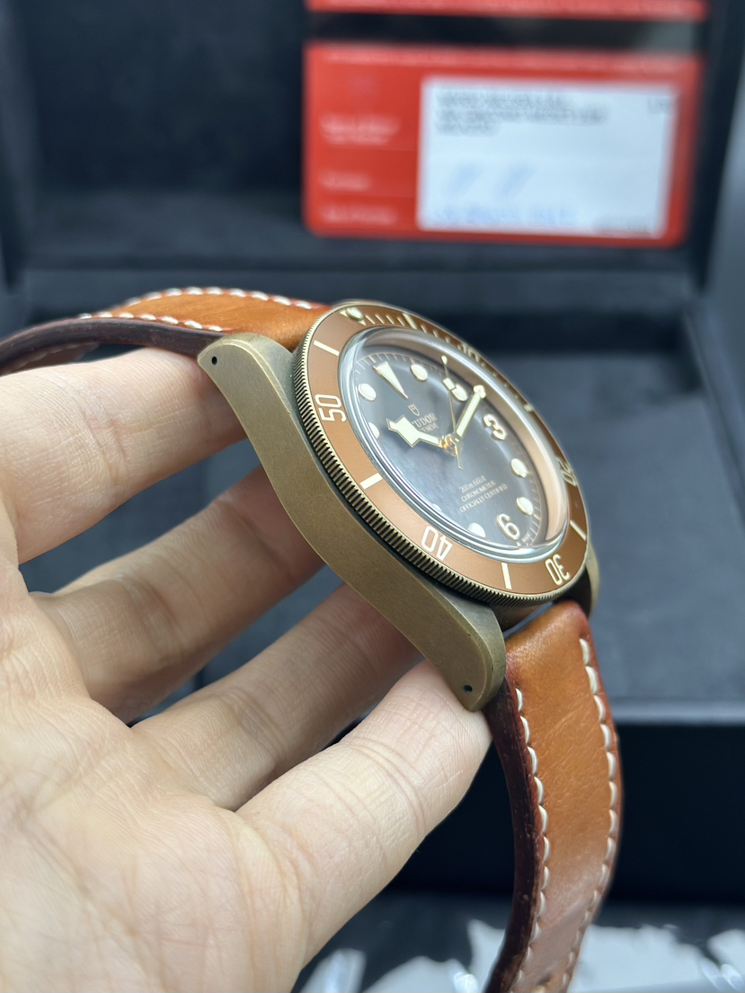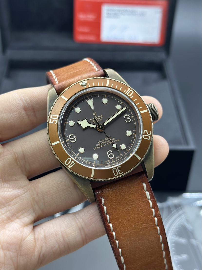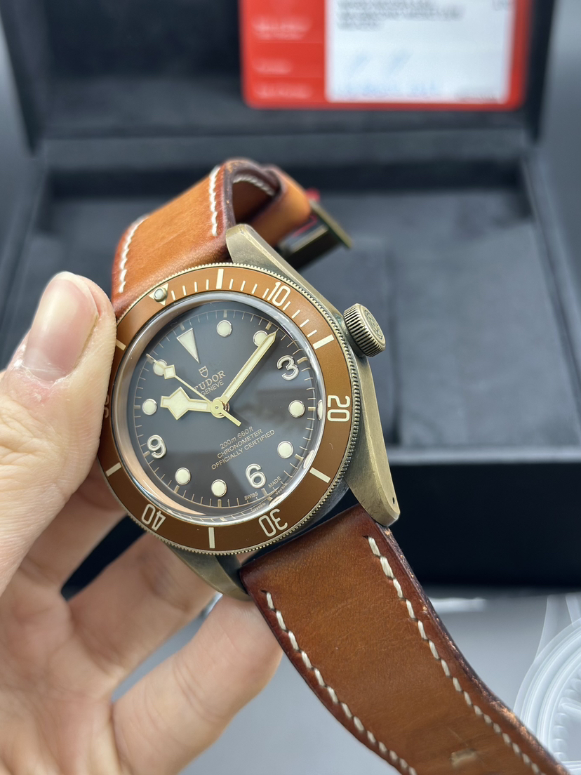 帝舵 碧湾系列型号 M79250BM-0005自动机械表,表径43mm,帝舵小桐花,古铜表壳搭配仿古皮表带和哑光面棕色字圈,配色设计上具有十足的韵味,2017年全套 专柜价28500,现好价出售!