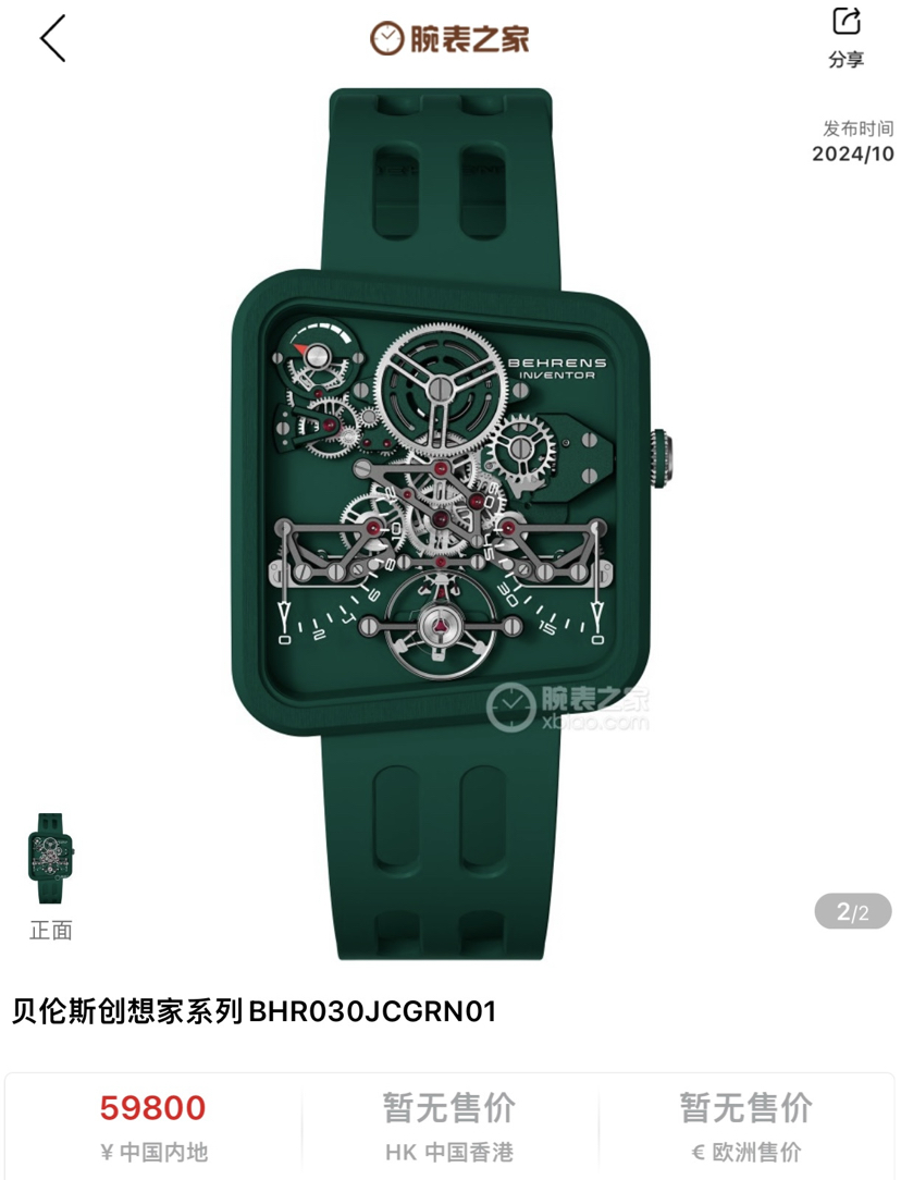 贝伦斯创想家BHR030JCGRN01机械男性