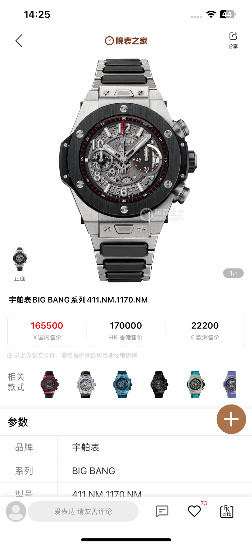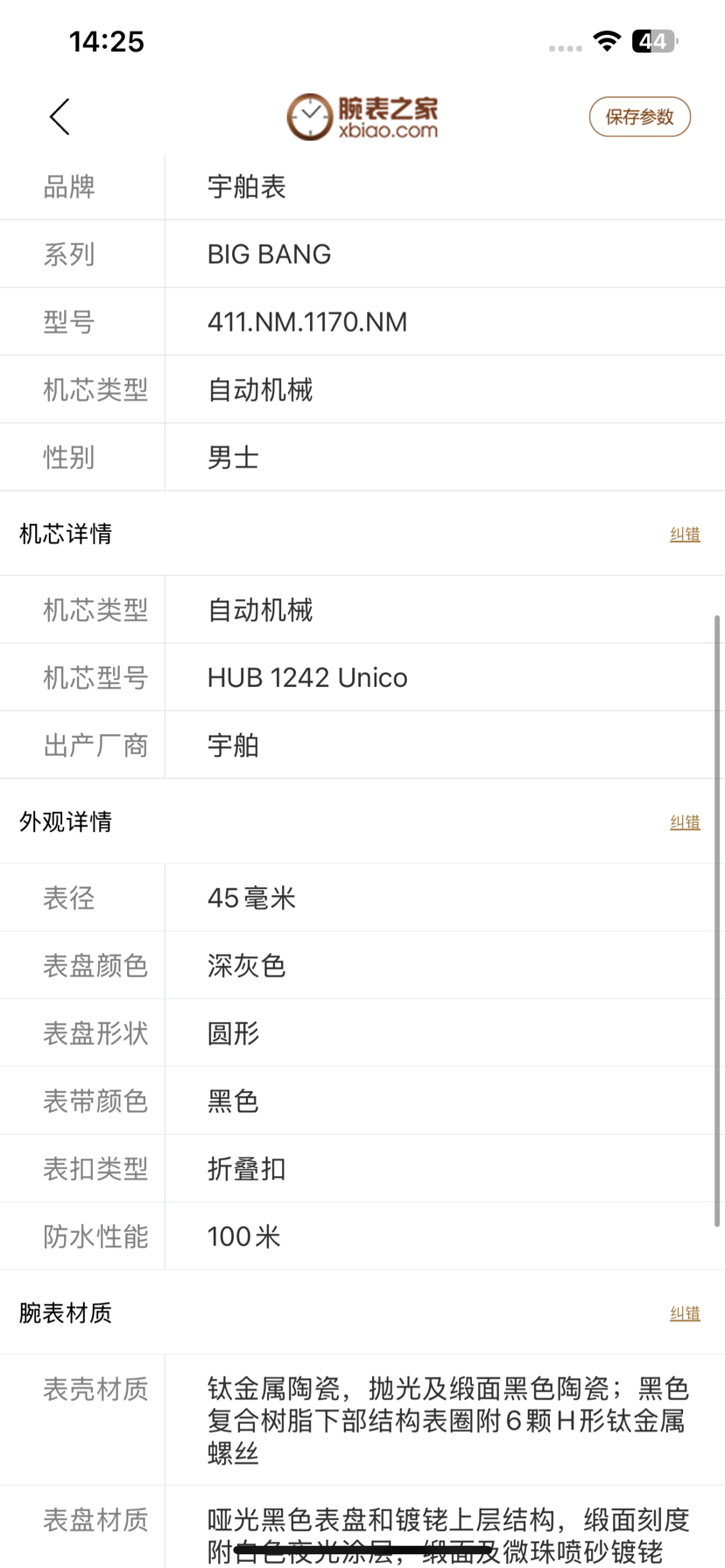 宇舶BIGBANG411.NM.1170.NM机械男性