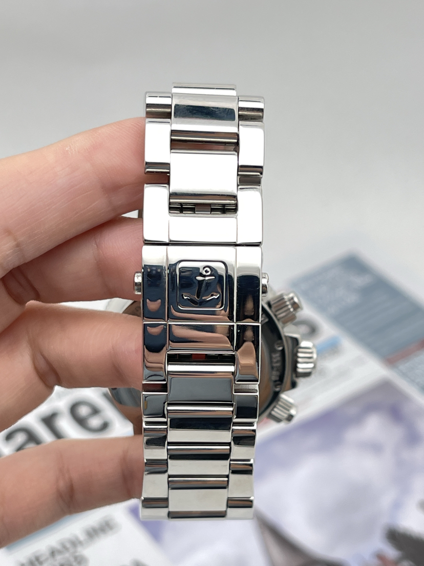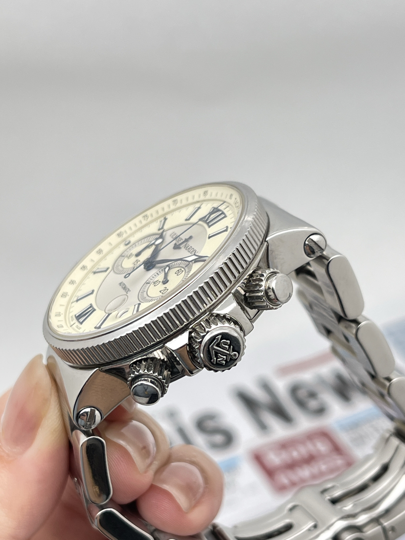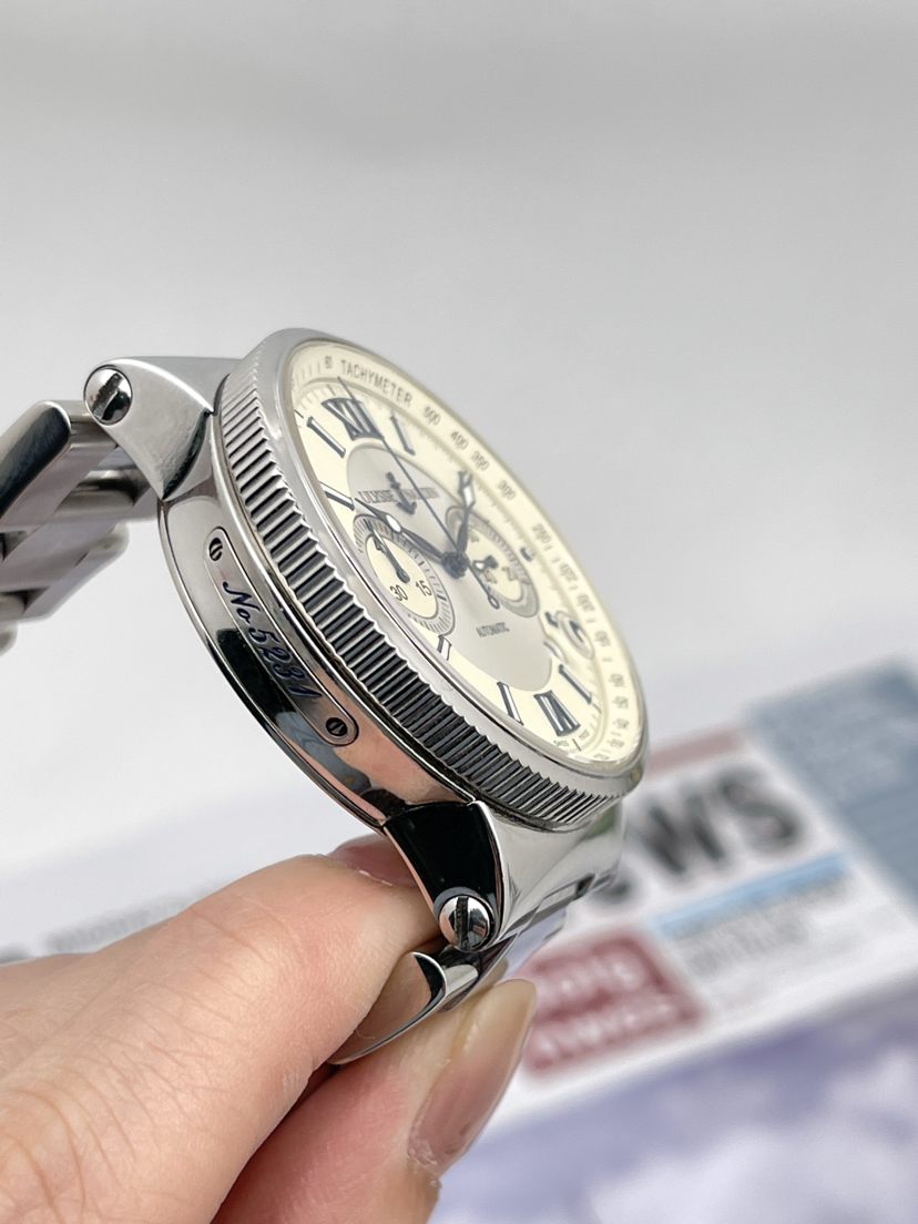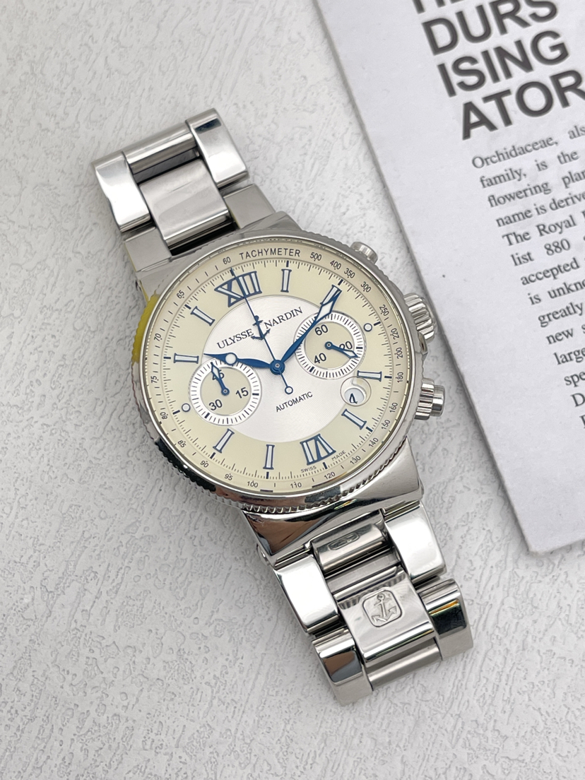 雅典353-66-7 经典航海系列41mm复古奶黄色盘面搭配烤蓝工艺指针刻度 透底自产计时机芯 原装钢带 200m防水 原价81000 现货好价