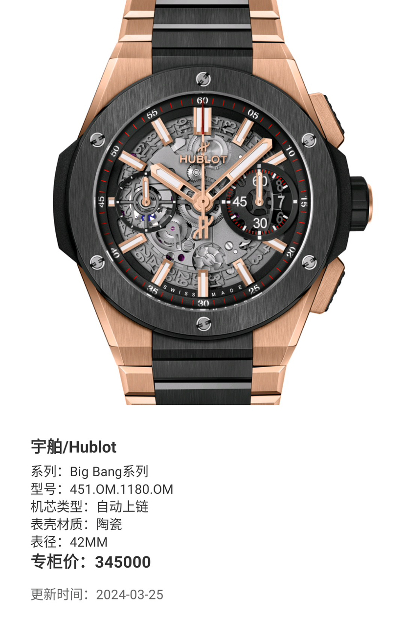 宇舶/Hublot Big Bang系列 未使用九月卡451.OM.1180.OM 自动上链 陶瓷 42MM 专柜价345000