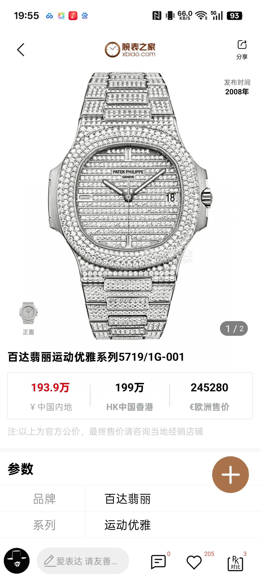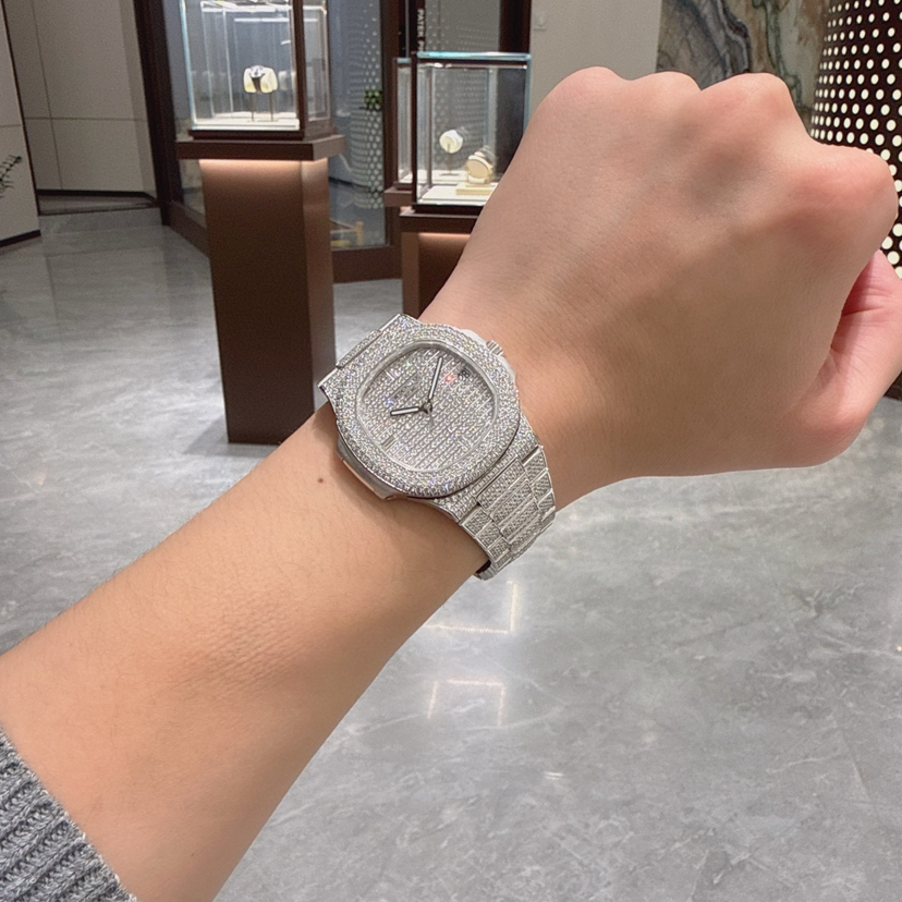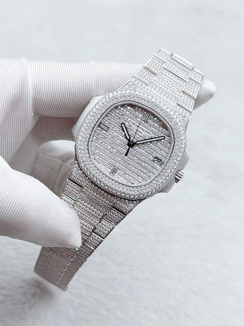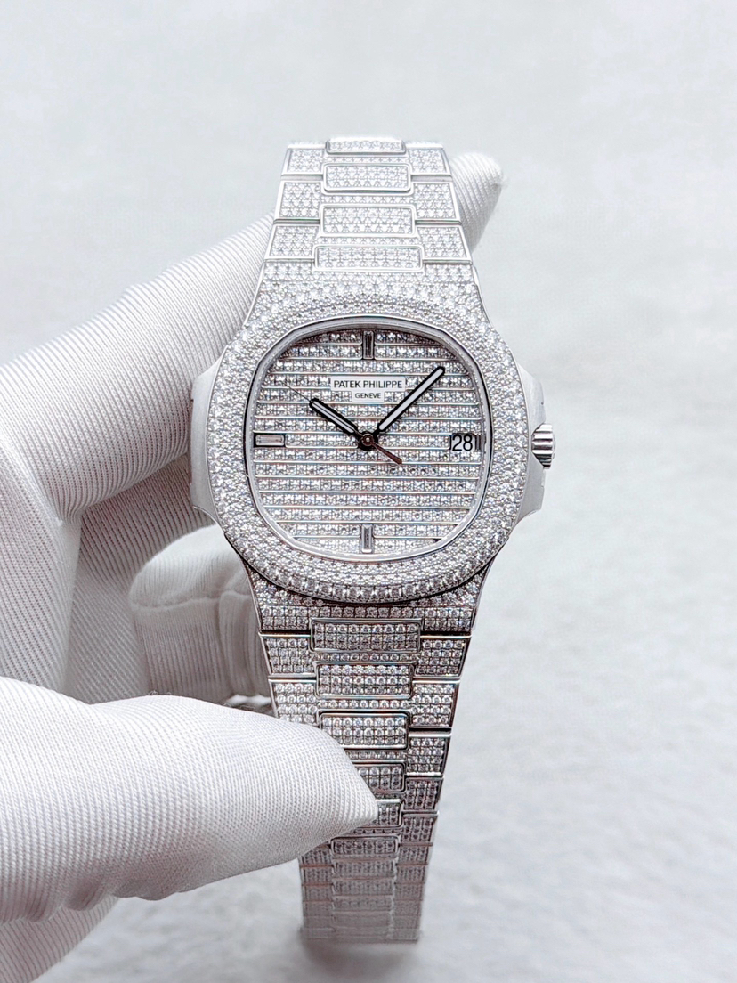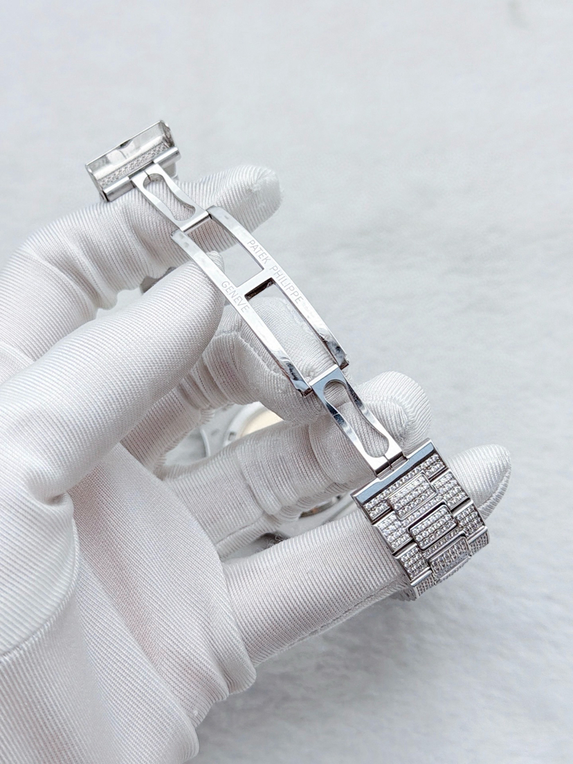 【极品单表双P】百达翡丽运动优雅系列5719/1G-001白金原镶钻鹦鹉螺
