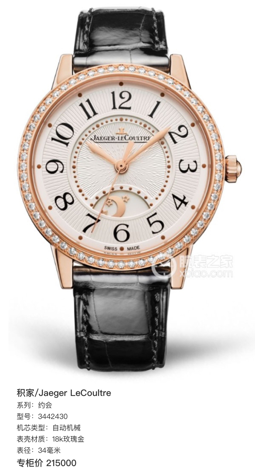 积家/Jaeger LeCoultre 约会 3442430 自动机械 18k玫瑰金 34毫米 专柜价215000,21年已延保,未使用
