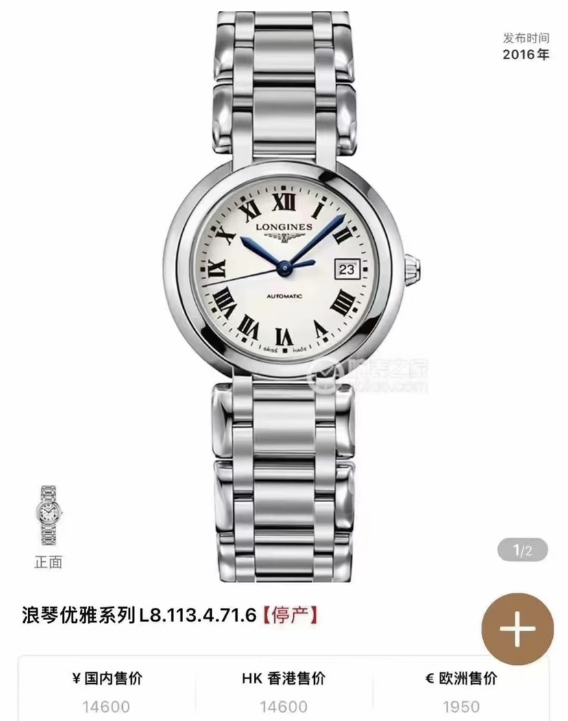 浪琴表心月系列 L8.113.4.71.6 女士腕表自动上链机械机芯 精钢 30.00mm表径,极品成色,24年全套, 专柜价14600元 现货好价