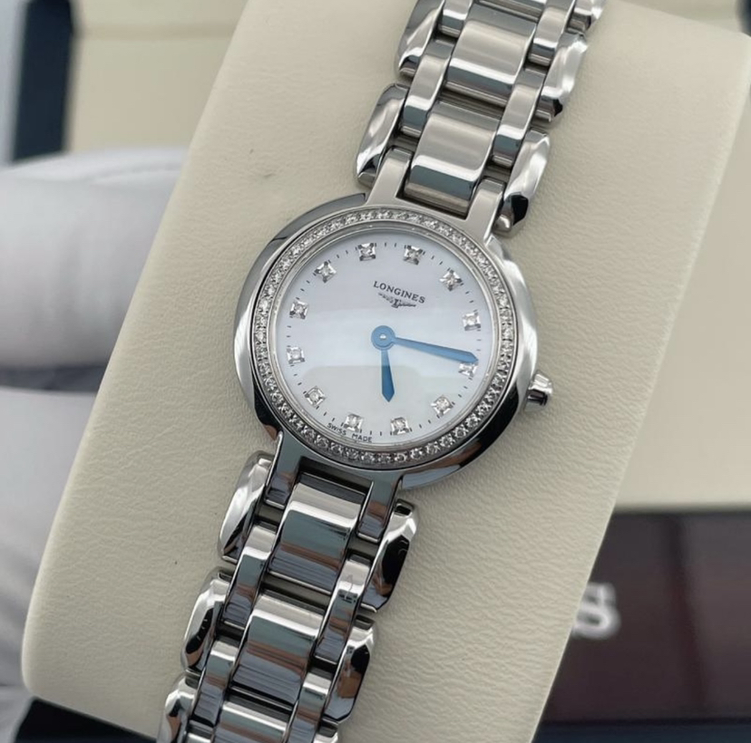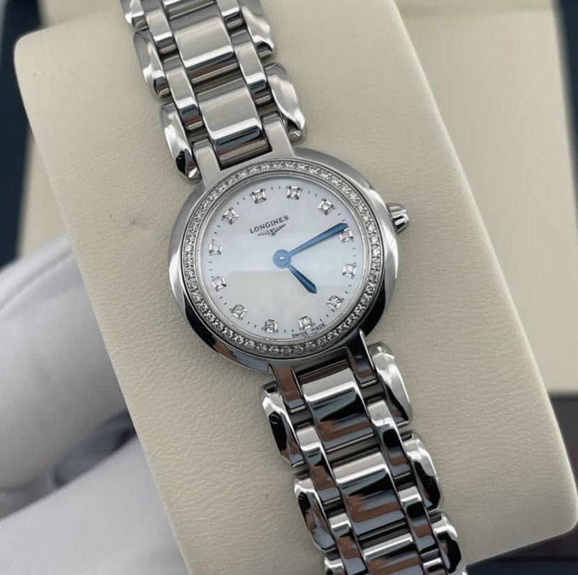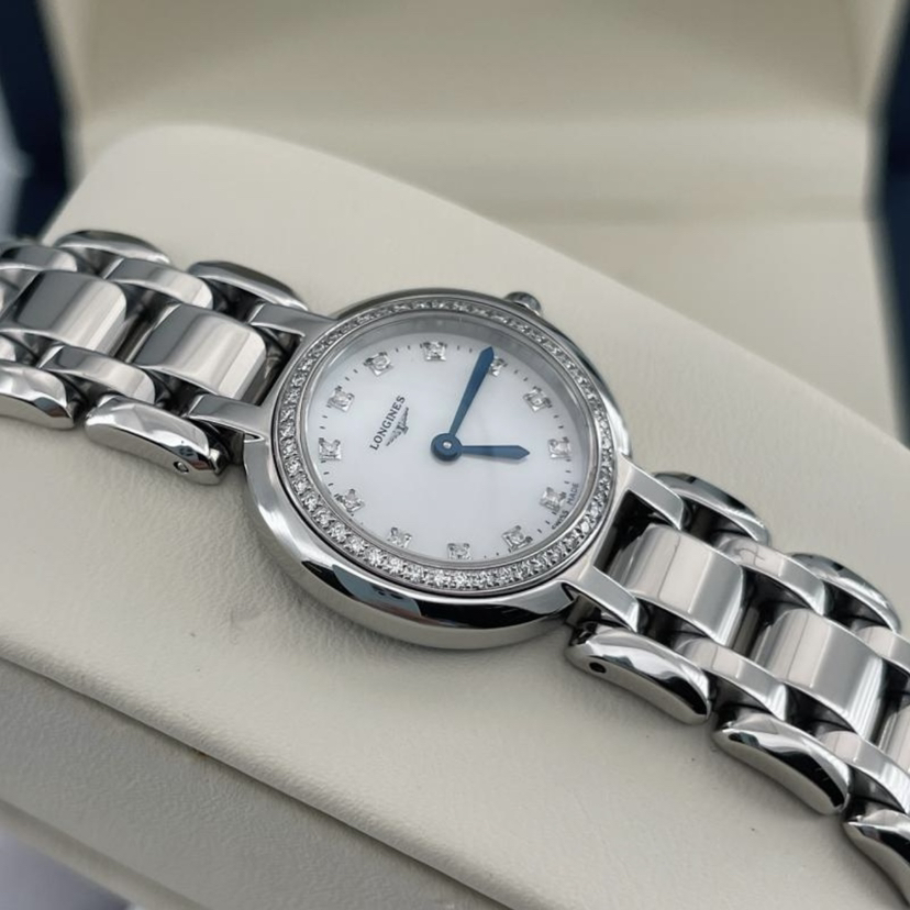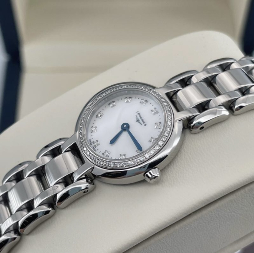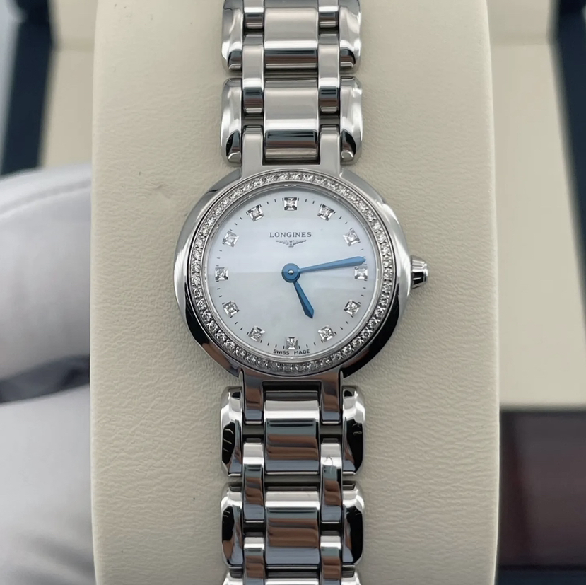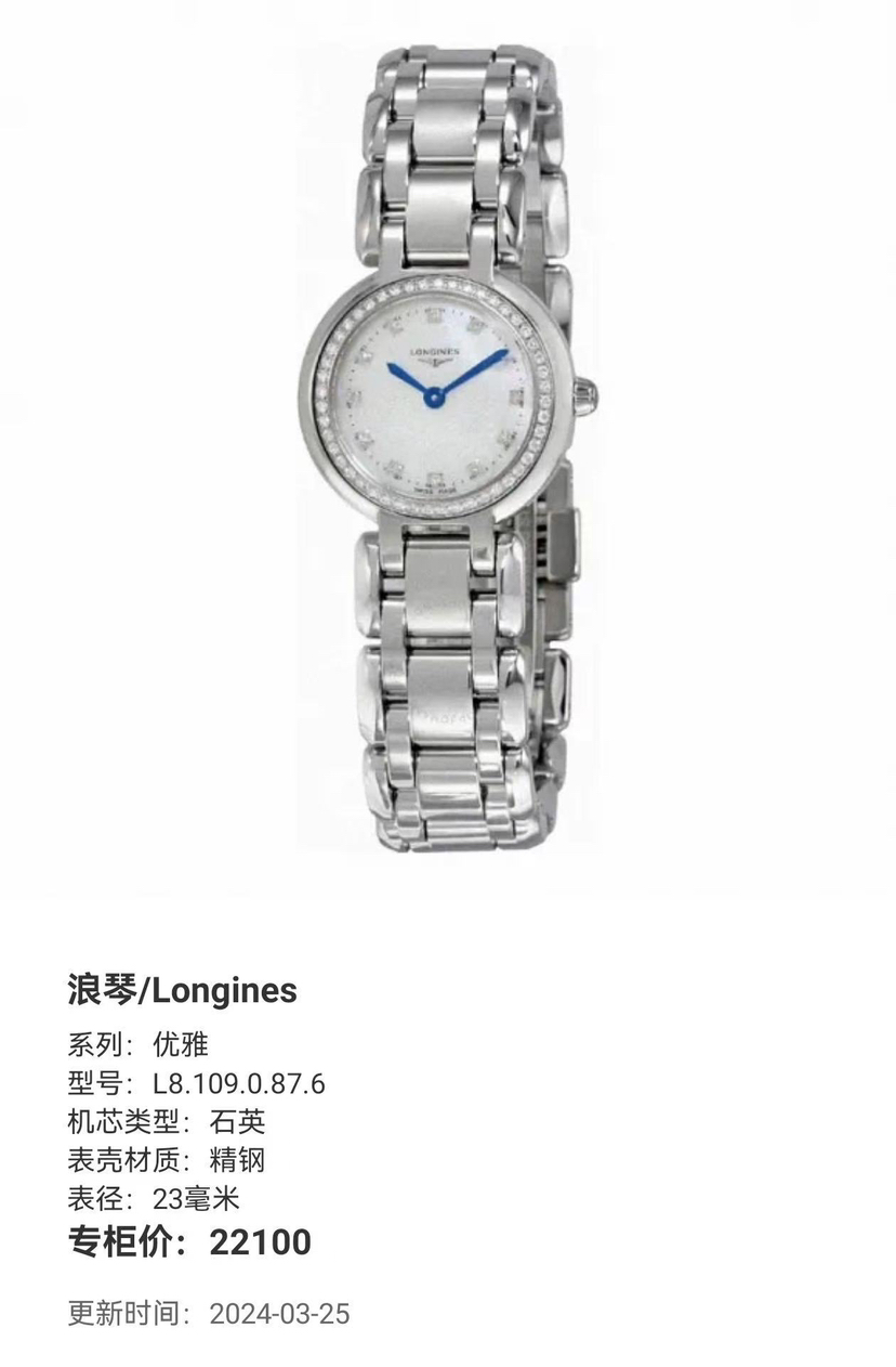 浪琴心月系列L8.109.0.87.6 女士石英腕表 珍珠贝母表盘 钻石刻度 外圈原钻 表径23mm ,极品成色,20年保卡, 公价22100 现好价