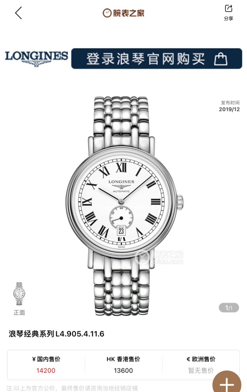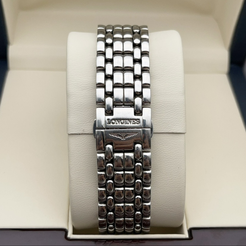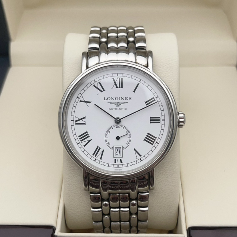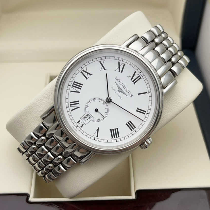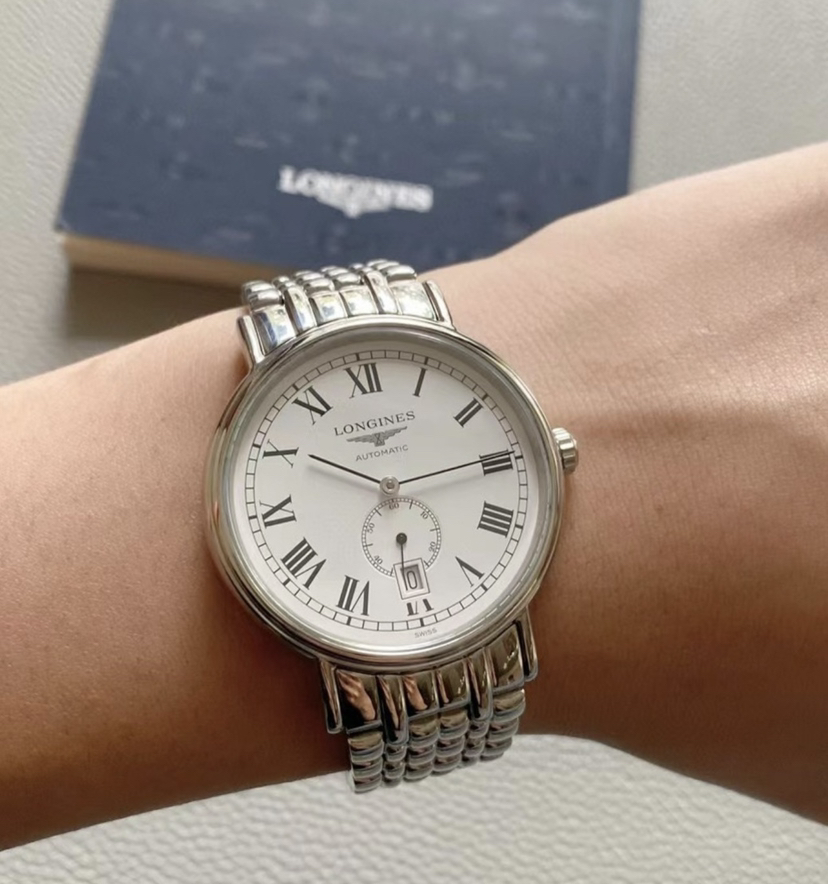 浪琴瑰丽系列L4.905.4.11.6男士自动机械腕表 40毫米表径 白色盘面 罗马刻度 日历显示 72小时动力储备 精钢材质 22年保卡 专柜公价14200元 现好价