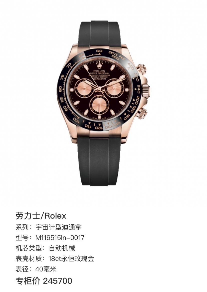 劳力士/Rolex 宇宙计型迪通拿 M116515ln-0017 自动机械 18ct永恒玫瑰金 40毫米 专柜价245700