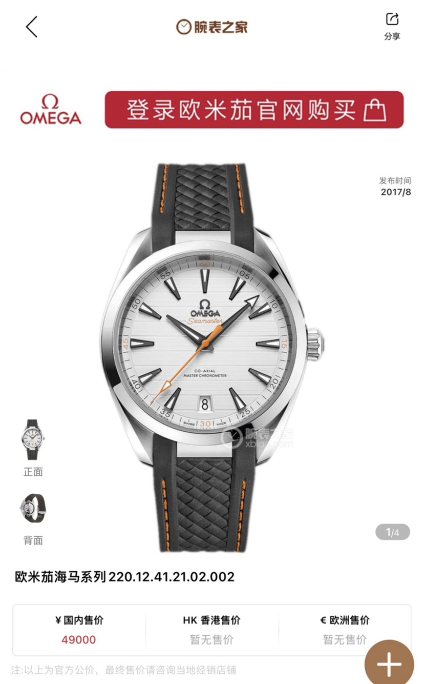 欧米茄 海马系列 220.12.41.21.02.002 男士腕表,表径41mm 精钢 自动机械 ,极品成色,24年保卡,公价49000元 现货好价。