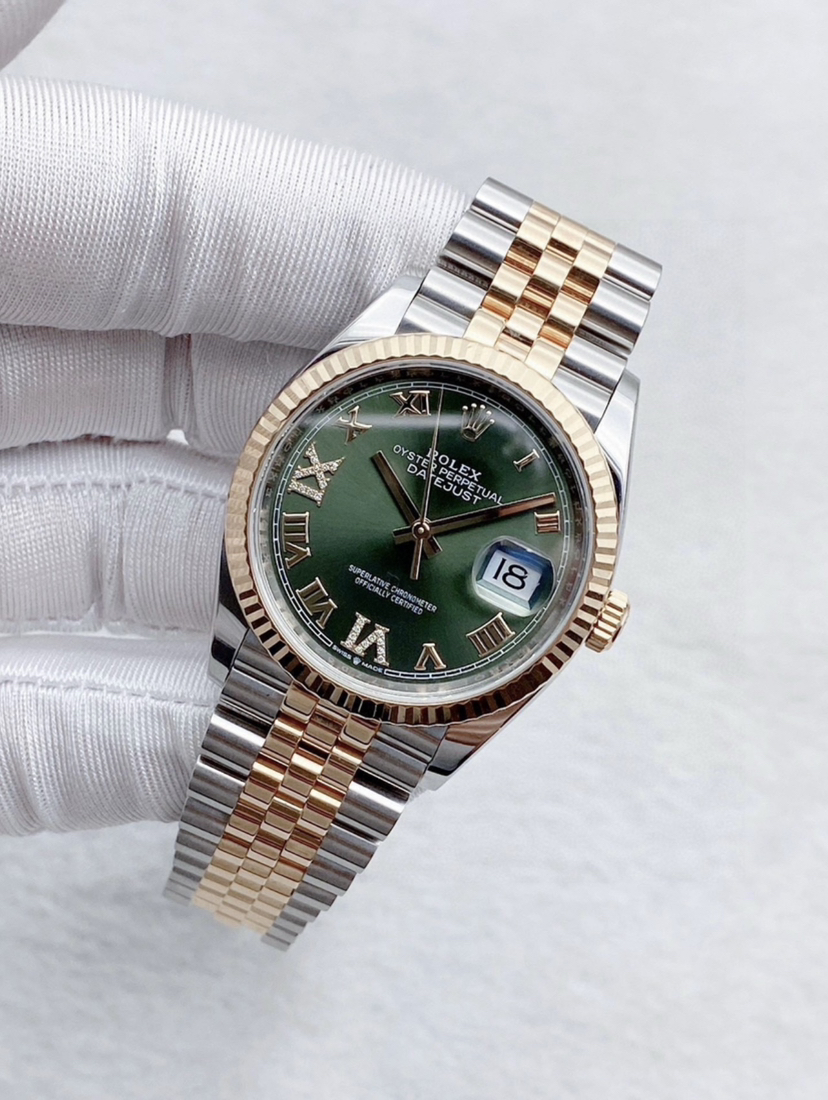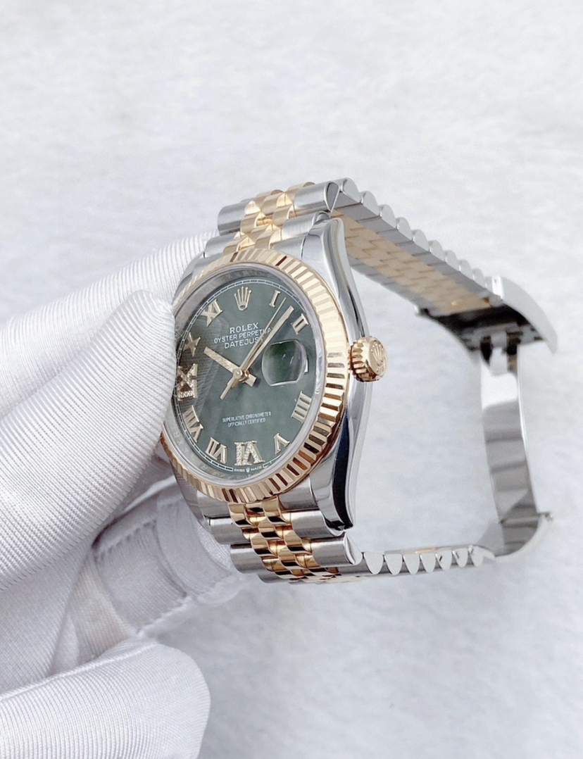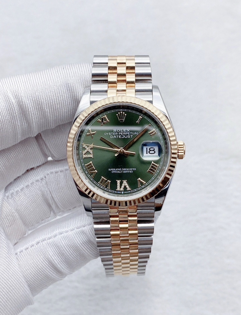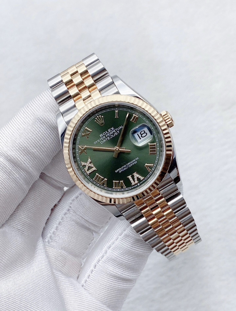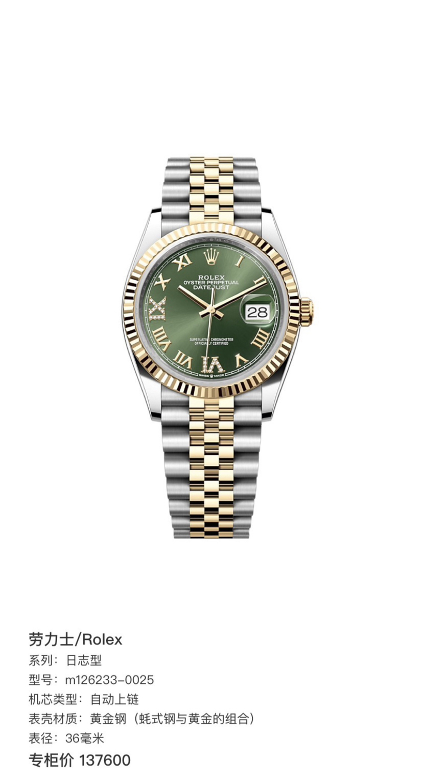 单表 新款皇冠 绿萝 V 钻 劳力士/Rolex 日志型 m126233-0025 专柜价146300。