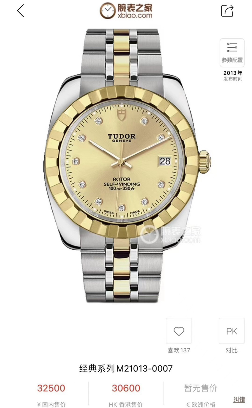 Tudor 帝舵,经典系列,m21013-0007,自动机械男表,18k金/精钢材质,表径38mm,极品成色,单表,公价¥32500 现好价