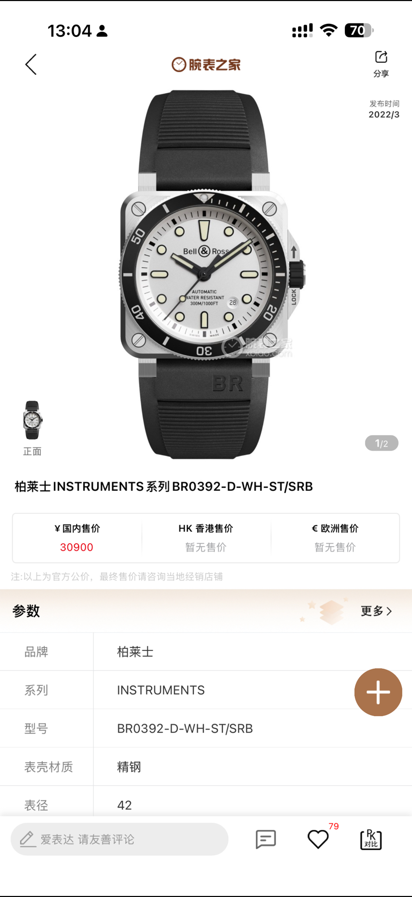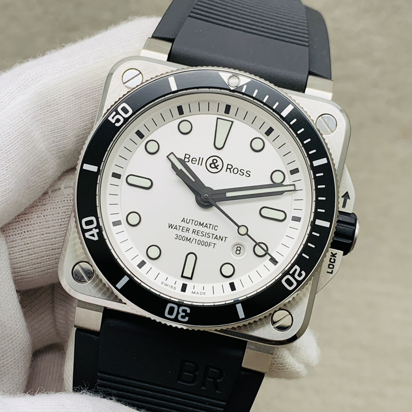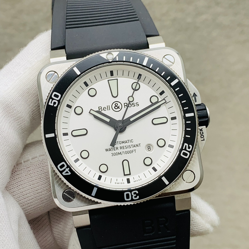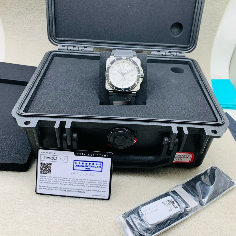 柏莱士 INSTRUMENTS系列 BR0392-D-WH-ST/SRB雪白色表盘 双表带 300米潜水腕表 购于22年 带发票 夜光给力 极品极品 专柜价30900。现货好价。
