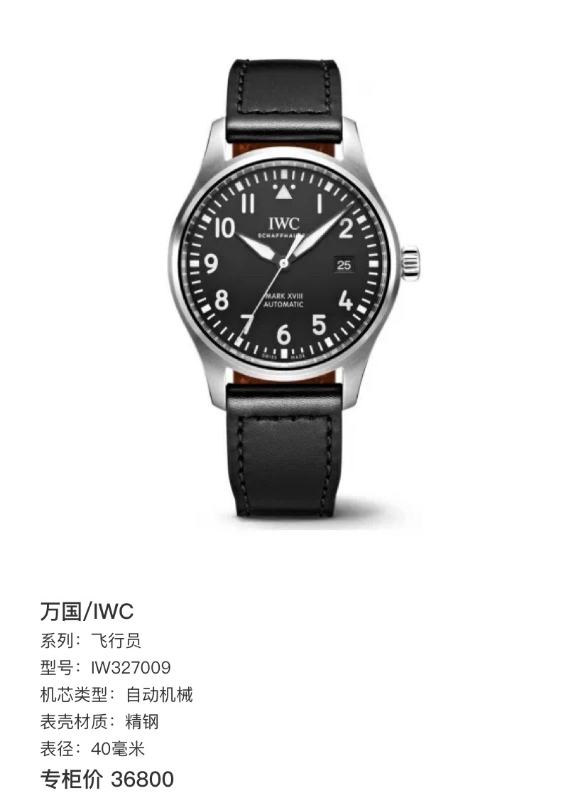 22年二手全套16500,万国/IWC 飞行员 IW327009 自动机械 精钢 40毫米 专柜价36800
