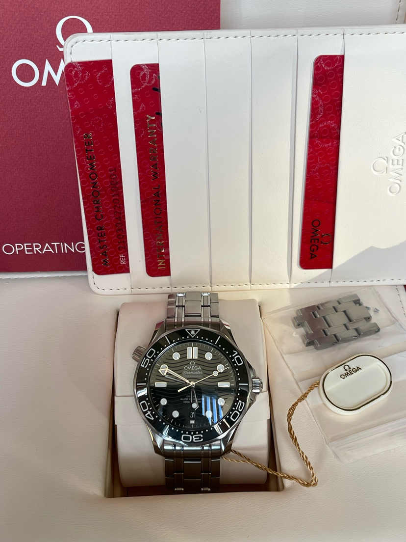 2024年全套 欧米茄/Omega 海马系列 210.30.42.20.10.001 自动上链 精钢 42 专柜价48100,2024年全套全长,A字头 极品成色