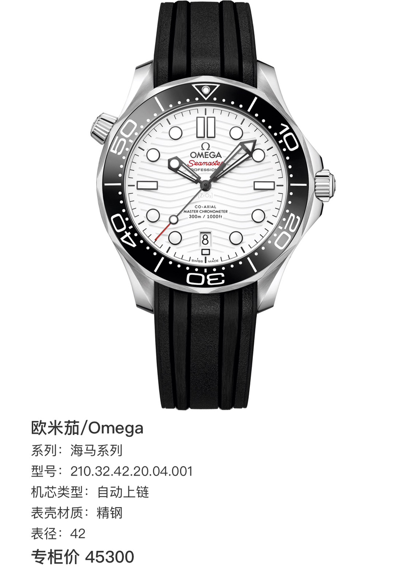 欧米茄/Omega 海马系列 210.32.42.20.04.001 自动上链 精钢 42 专柜价45300