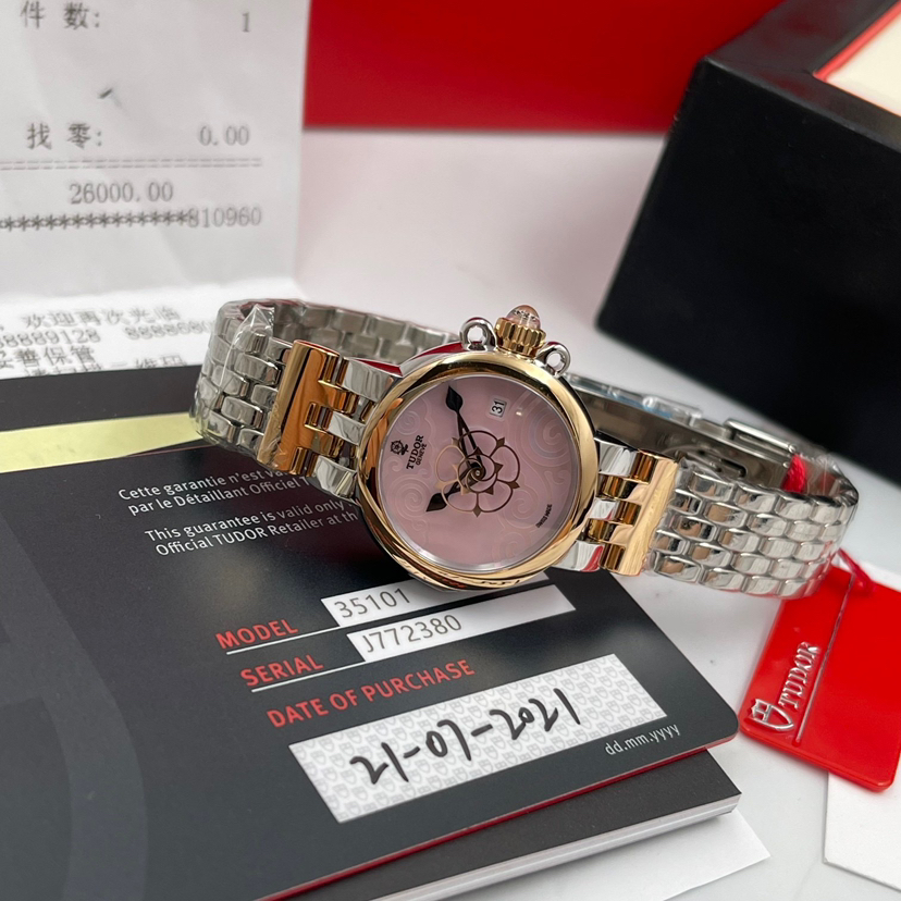 帝舵/Tudor 玫瑰 35101-65710 自动机械 不锈钢/18K玫瑰金,18K玫瑰金外圈 26毫米 专柜价32900帝舵/Tudor 玫瑰 35101-Black satin 自动机械 不锈钢/18K玫瑰金,18K玫瑰金外圈 26毫米 专柜价31200