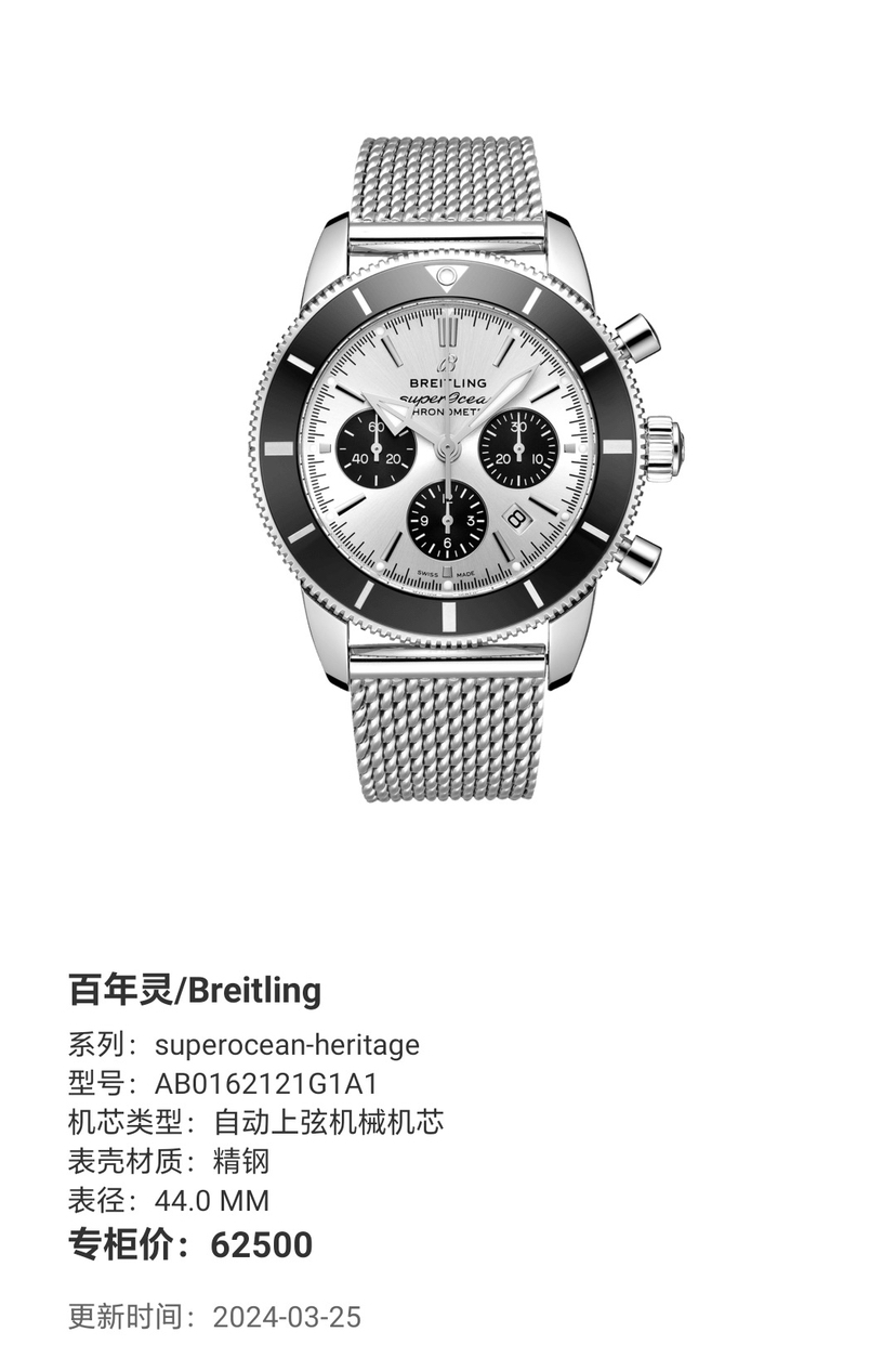 百年灵/Breitling superocean-heritage AB0162121G1A1 自动上弦机械机芯 精钢 44.0 MM 专柜价62500。18年全套,现货好价!