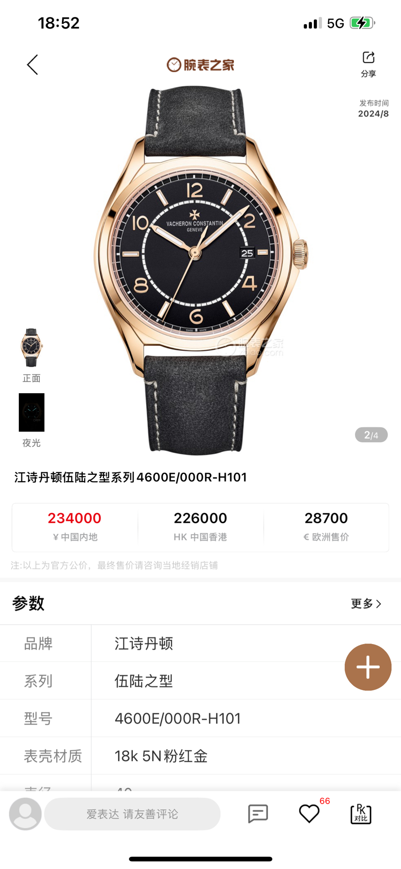 江诗丹顿伍陆之型Fiftysix4600E/000R-H101机械男性
