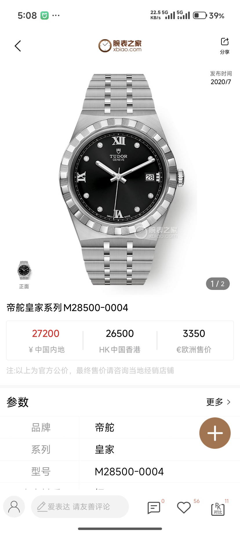 帝舵皇家系列M28500-0004 38毫米表经 钻石刻度 自动机械 100米防水 专柜价27200 国行全新未使用25年11月卡