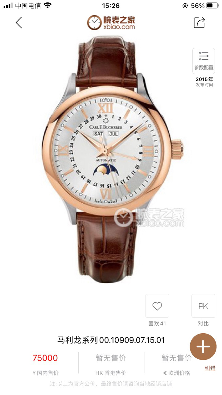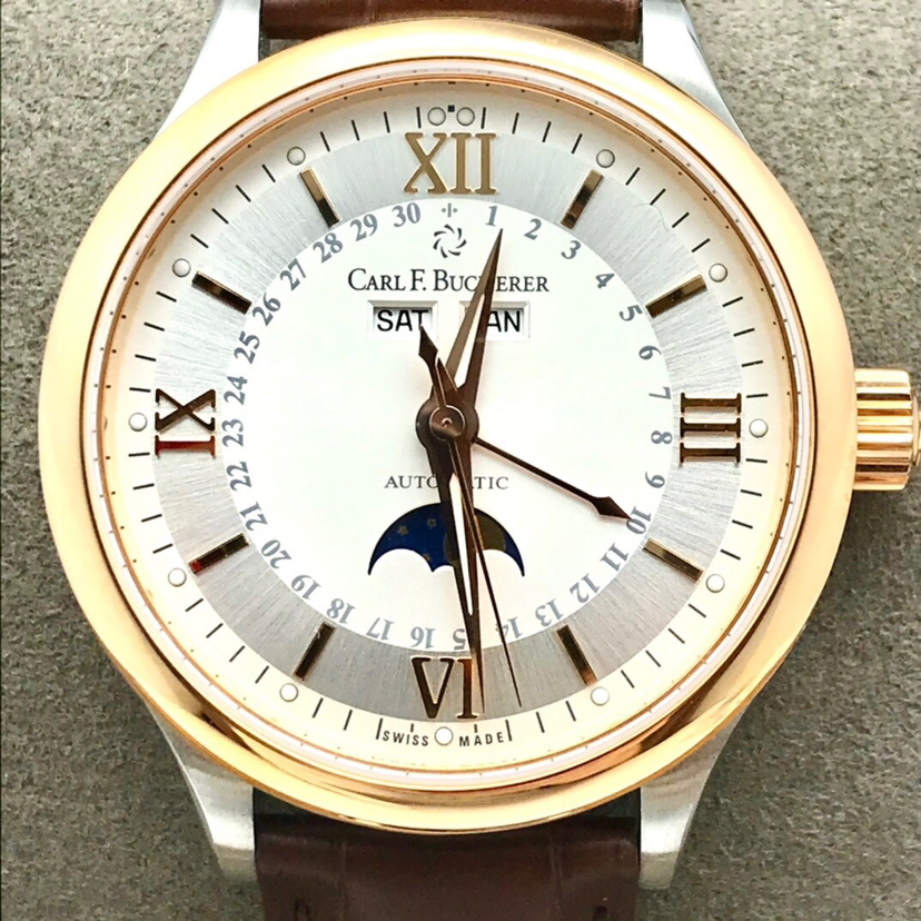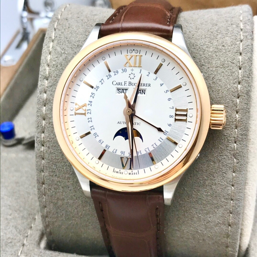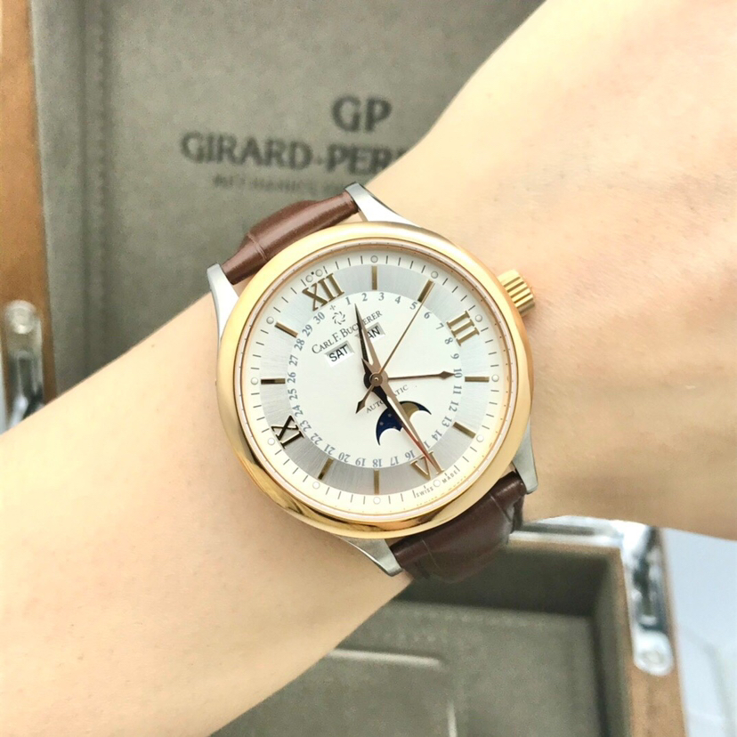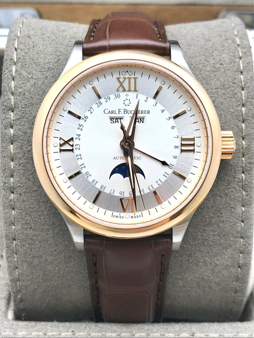 宝齐莱 马利龙 系列00.10909.07.15.01 18k玫瑰金圈自动机械年历男士腕表,表径38毫米,原价75000,全新未使用全套盒卡齐全。