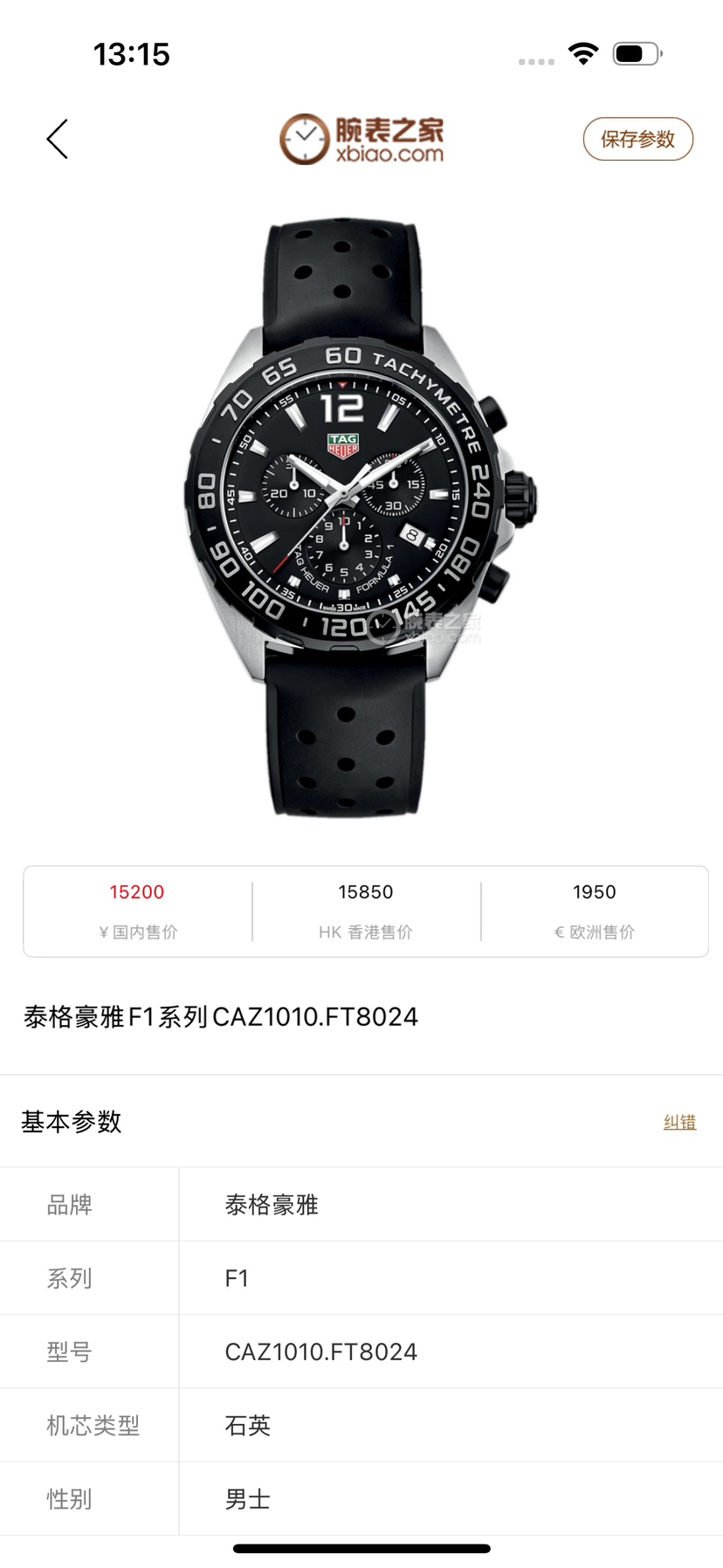 泰格豪雅FORMULA 1CAZ1010.FT8024石英男性