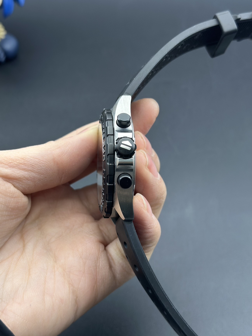 表径43mm ,精钢/钛金属材质,橡胶表带;喷砂精钢覆黑色PVD涂层固定式表圈,测速刻度 ,热门款,公价15200,现好价出售!