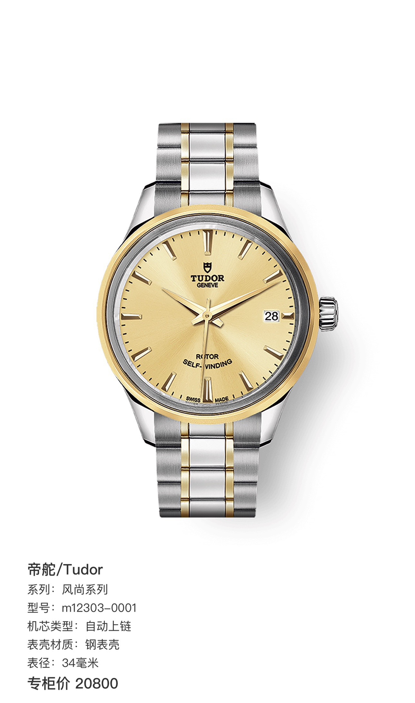 帝舵/Tudor 风尚系列 m12303-0001 自动上链 钢表壳 34毫米 专柜价20800 全新全套好价格。