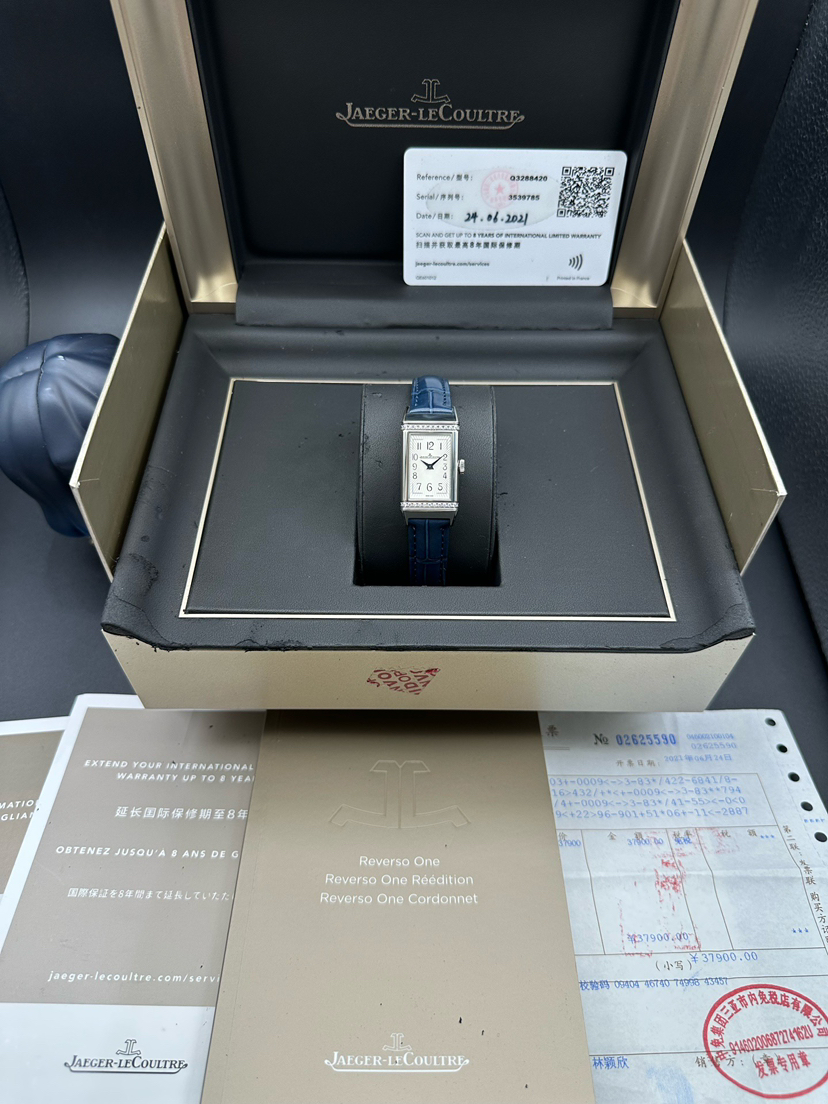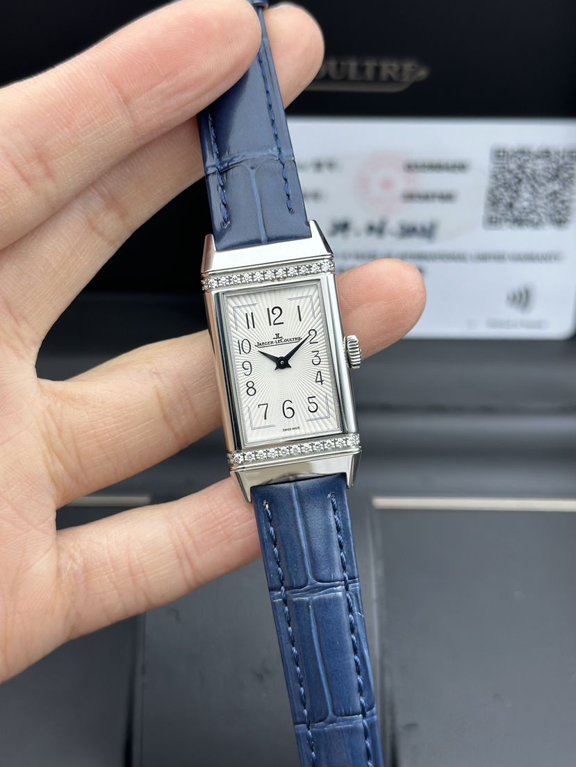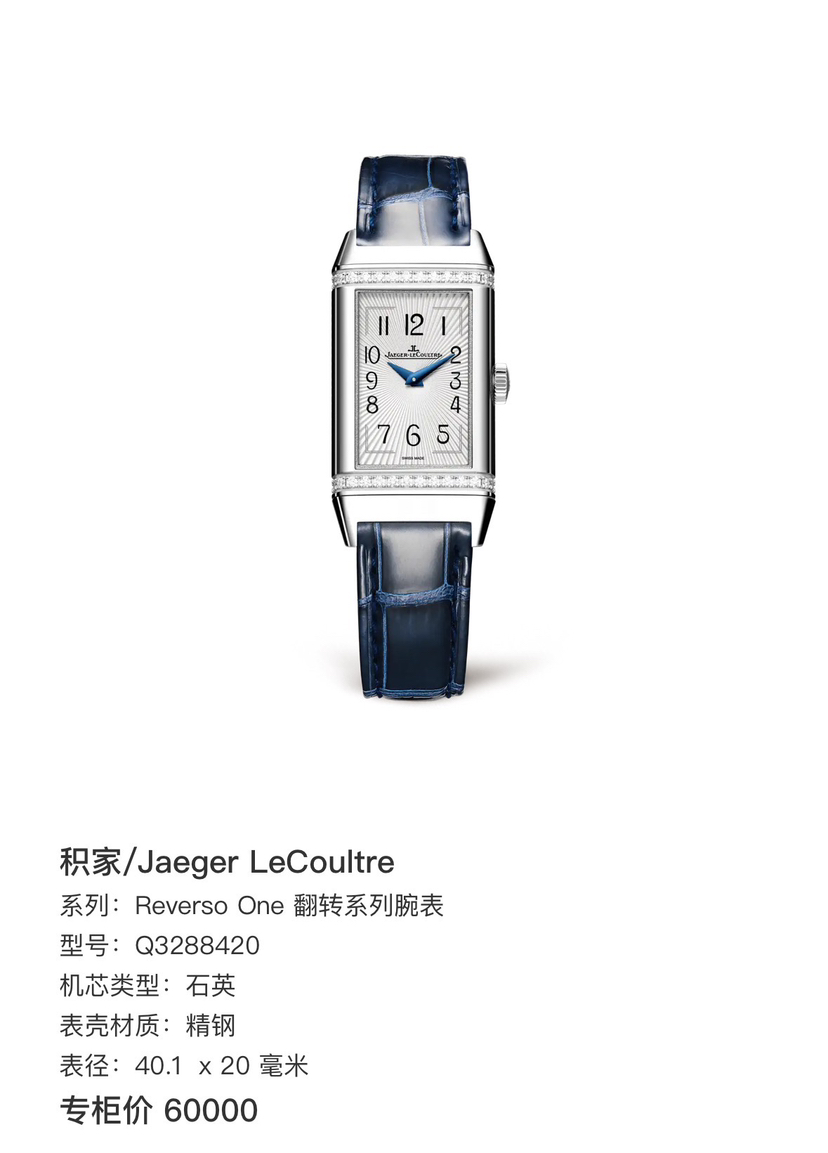 积家 翻转 Q3288420女款石英手表,表径40×20mm,精钢材质,外圈原镶钻,单面翻转,女神最爱,2021年全套完美成色98新!公价60000,现好价带走!。