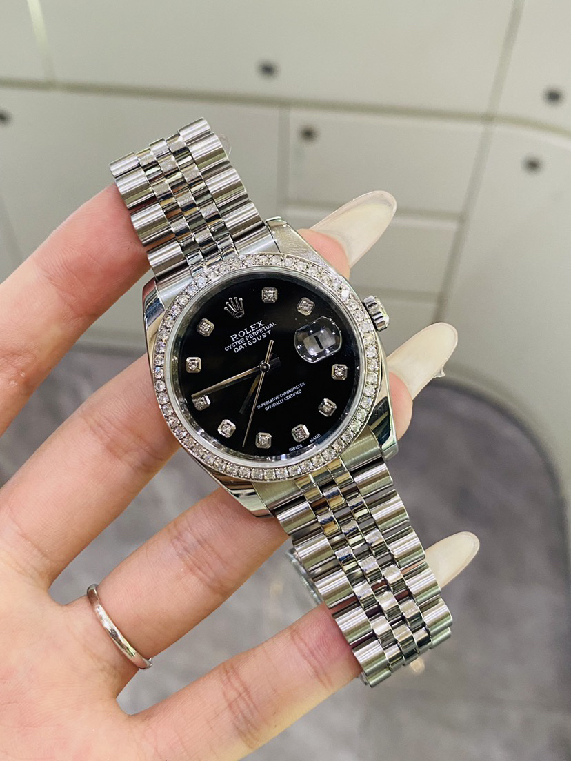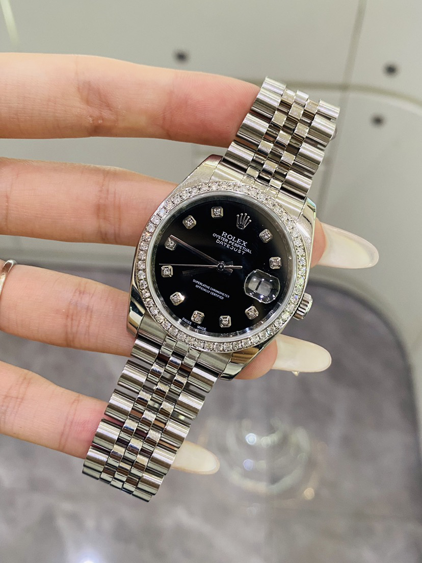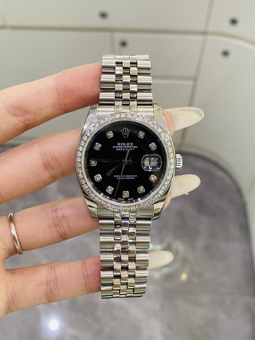 劳力士日志系列 116234型号 自动机械3135机芯 男性腕表 36毫米 银面 五珠带 后盘后镶钻时标
