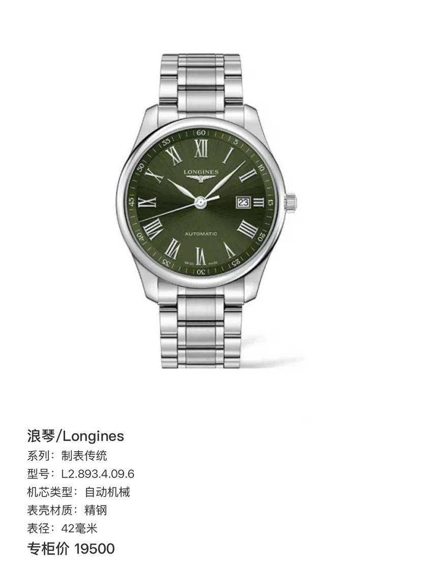 未使用国行浪琴、名匠系列 享受5年全球联保