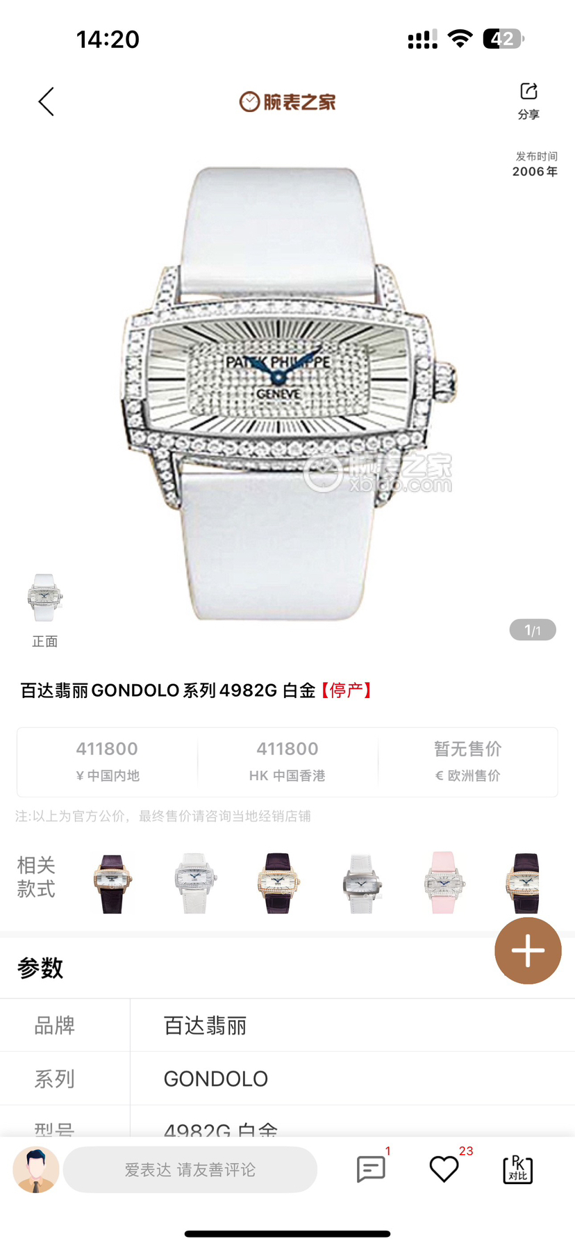 百达翡丽GONDOLO 系列 4982G 18k白金镶钻