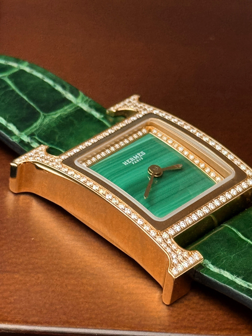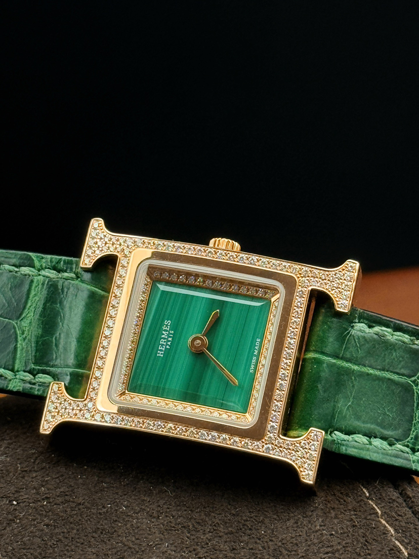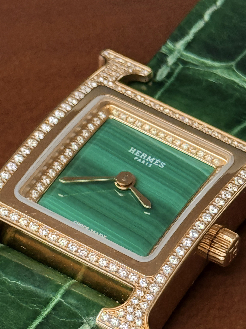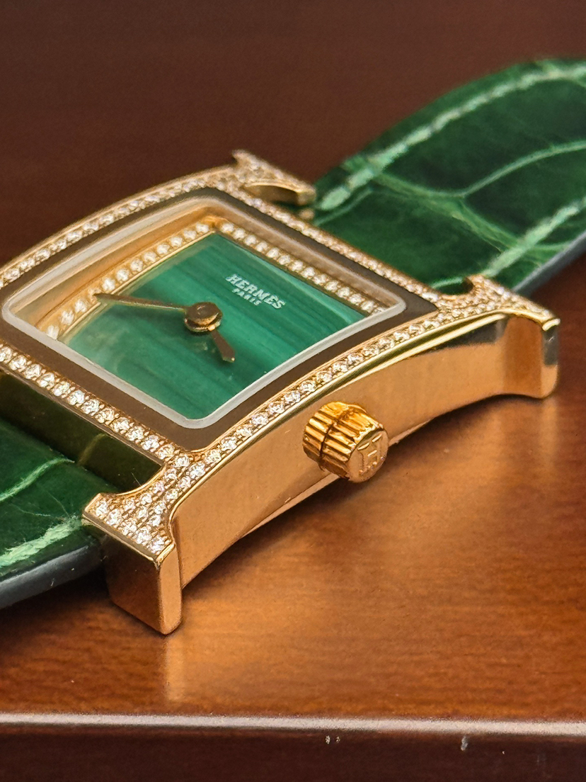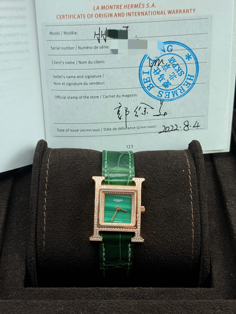 爱马仕 HEURE H系列W054095WW00 18K玫瑰金镶钻 表径21 石英22年全套新 公价173100 超级好价