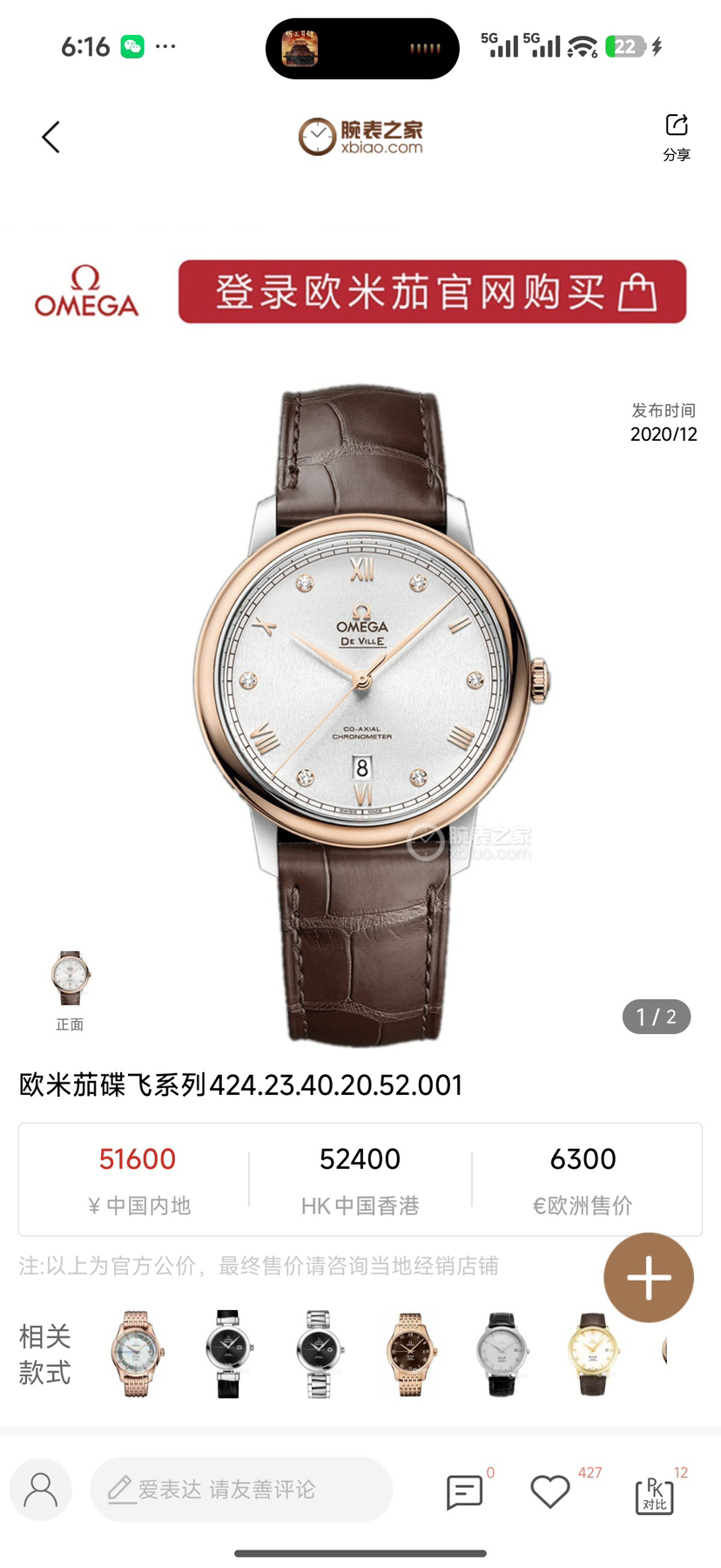 欧米茄碟飞424.23.40.20.52.001机械男性