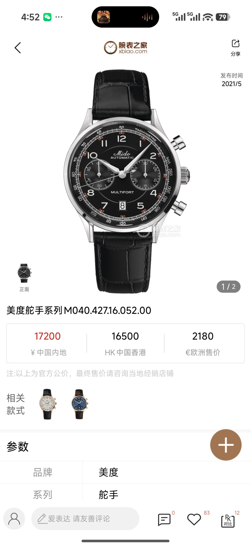 美度 舵手系列M040.427.16.052.00 42毫米表经 背透自动机械 60小时动力 50米防水 公价17200元 。国行全新未使用26年1月卡