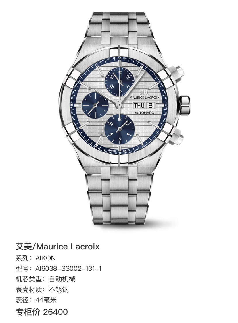 艾美/Maurice Lacroix AIKON AI6038-SS002-131-1 自动机械 不锈钢 44毫米