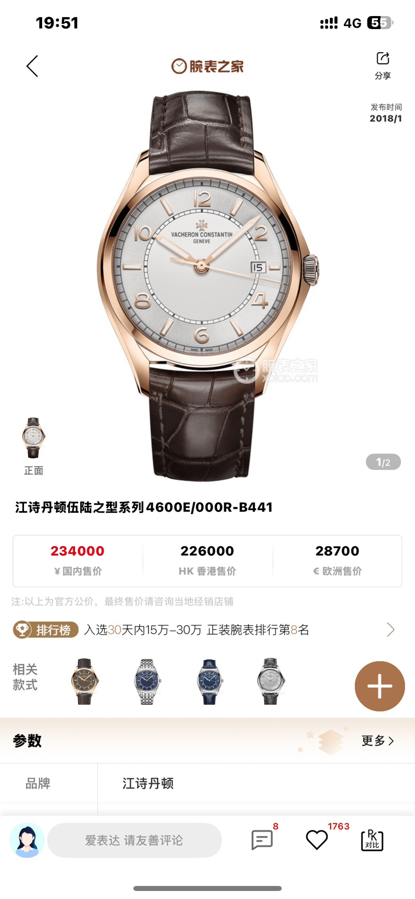 江诗丹顿伍陆之型Fiftysix4600E/000R-B441机械男性