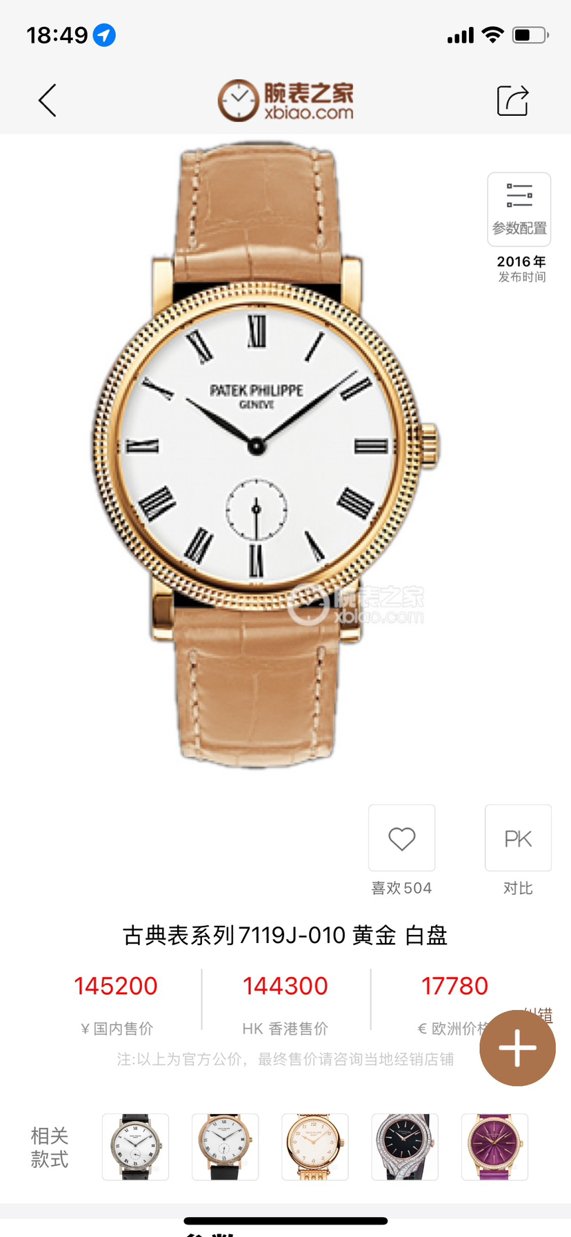 百达翡丽 热度榜 第6名