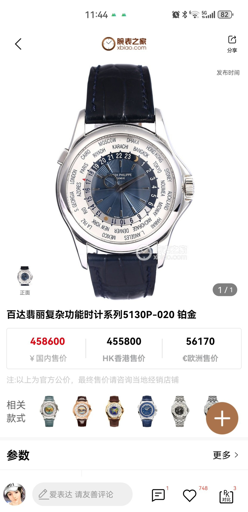 百达翡丽 复杂功能时计系列 5130P 世界时