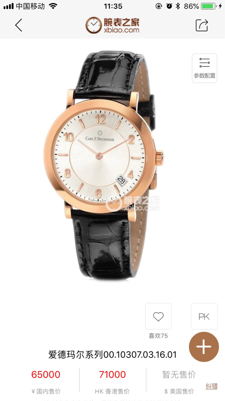宝齐莱爱德玛尔系列00.10307.03.16.01自动机械,18k玫瑰金,表径36毫米,表重54克,日历显示,背透机芯,公价65000