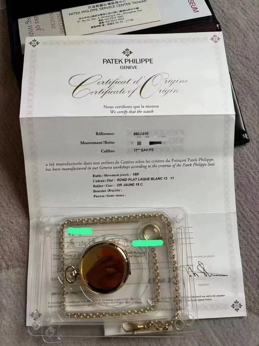 百达翡丽 980J-010,停产款男士手动机械怀表,18K黄金材质,21年全新全套 现货好价