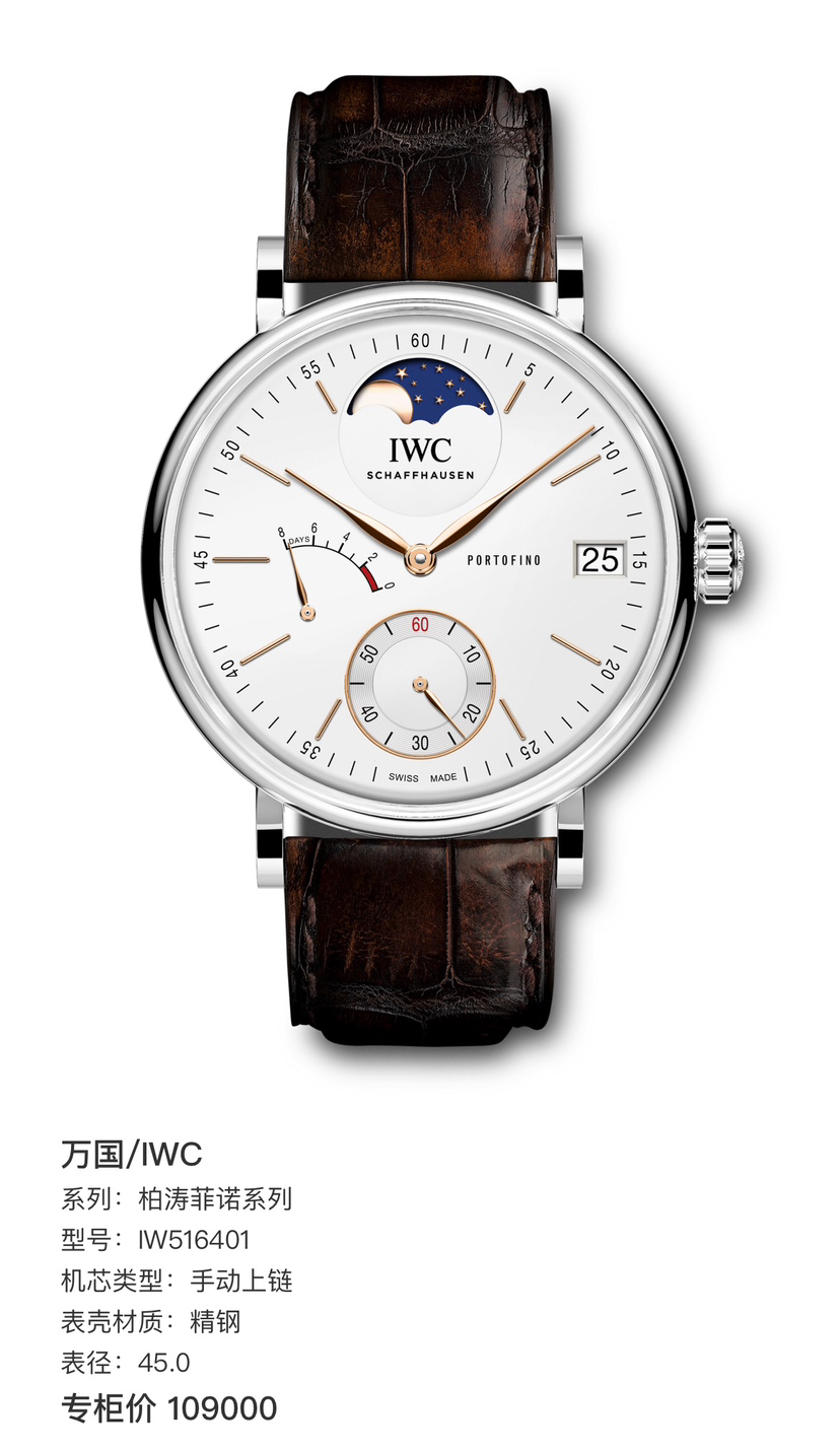 万国 柏涛菲诺系列 IW516401 手动上链 精钢 45mm表径 24年全套 专柜价109000 现好价。