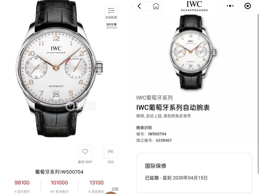 万国葡萄牙IW500704机械男性