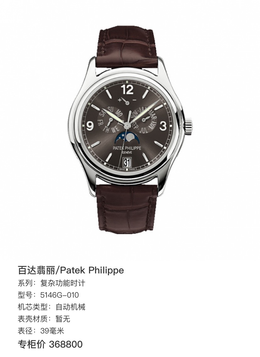08年全新全套,百达翡丽/Patek Philippe 复杂功能时计 5146G-010 自动机械 暂无 39毫米 专柜价368800