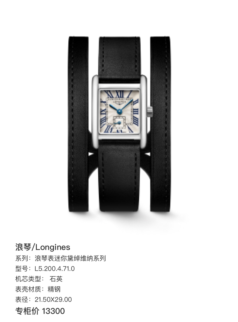 浪琴/Longines 浪琴表迷你黛绰维纳系列 L5.200.4.71.0 石英 精钢 21.50X29.00 专柜价13300。26全套,现货好价!