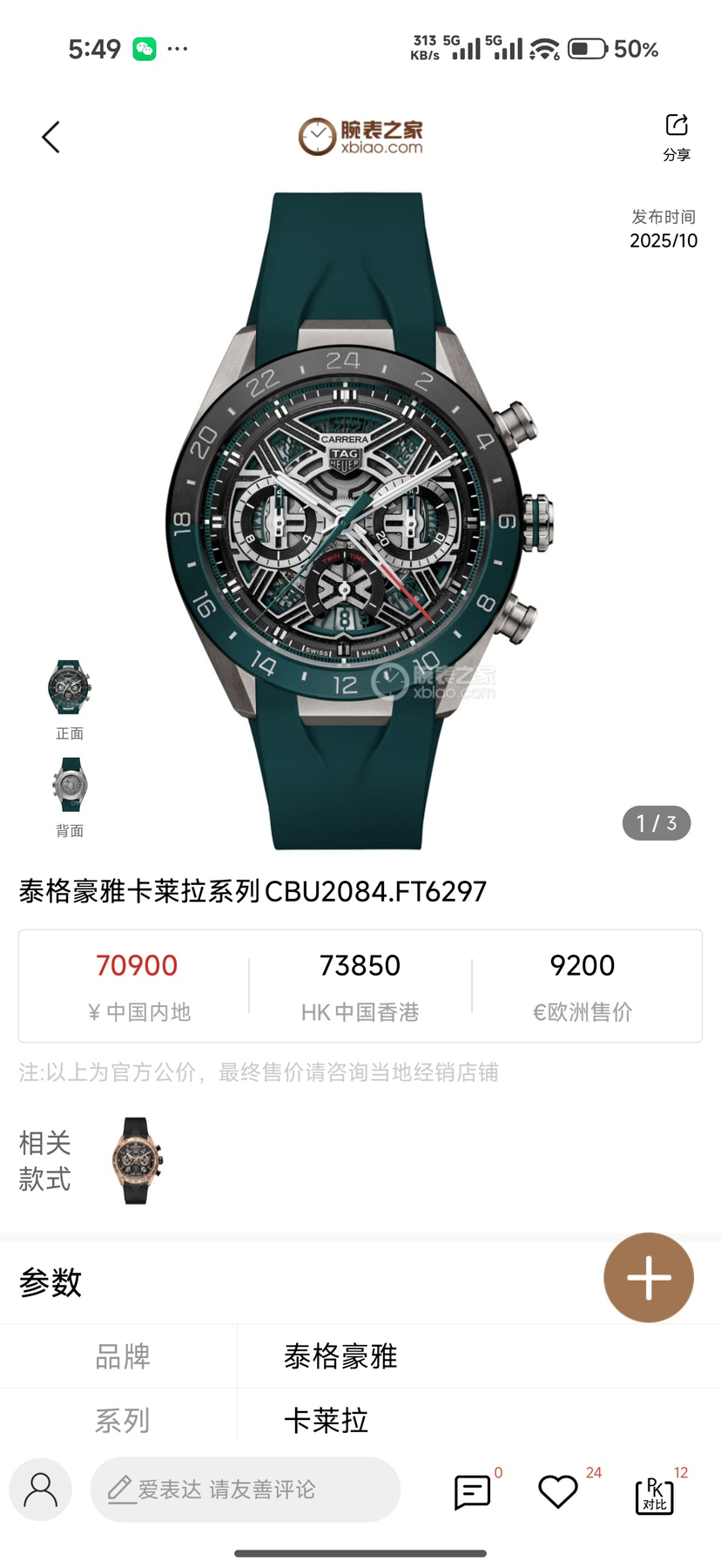 泰格豪雅卡莱拉CARRERACBU2084.FT6297机械男性